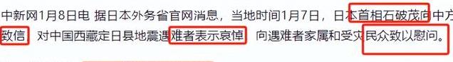 信息来源:2025-01-08 日本首相石破茂向西藏定日县地震受灾民众致以慰问