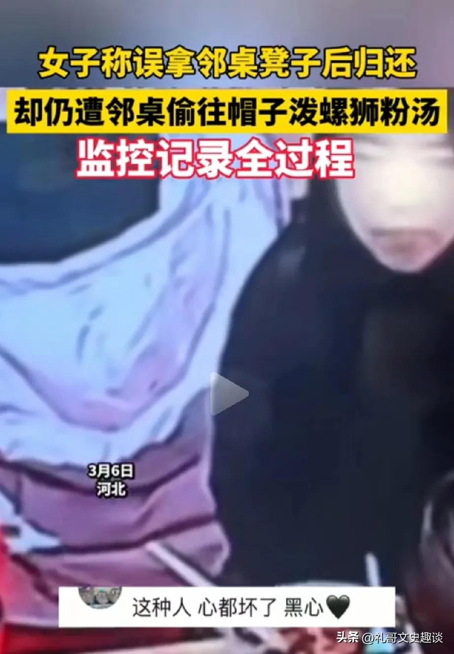 女子这样做,就显示她的人品不地道。女子出来吃饭,由于对方女孩做坐错了她的凳子,人家及时还给她了,她还说人家一顿。大家都以为事情结束了,没想到,她竟然舀了一勺汤倒在人家衣服帽子里,人家新买的羽绒服啊,这样的人素质太低了,人品不行。 人家又不是故意拿错凳子,饭馆那么多凳子咋了,再拿一个怎么了?这样的人心底黑暗。