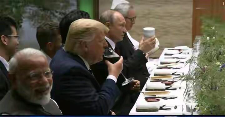 特朗普和普金,虽然他们名字中都有普,但他们风格大不一样。图一他们打电话,一个用座机一个用手机,图二他们喝酒,一个用杯子一个用酒杯,他们不是同条道上的人。