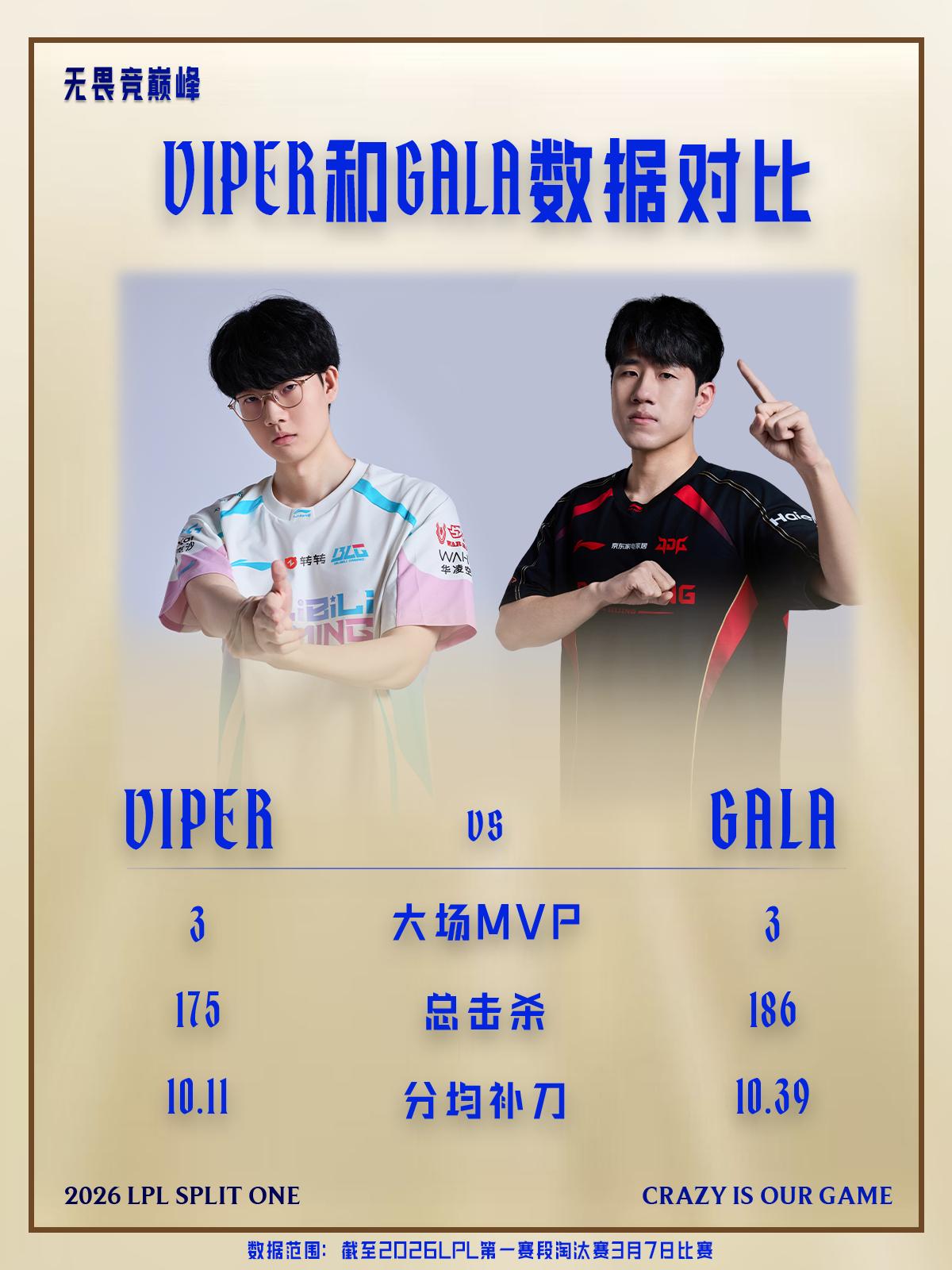 2026LPL第一赛段至今,Viper和GALA数据对比。