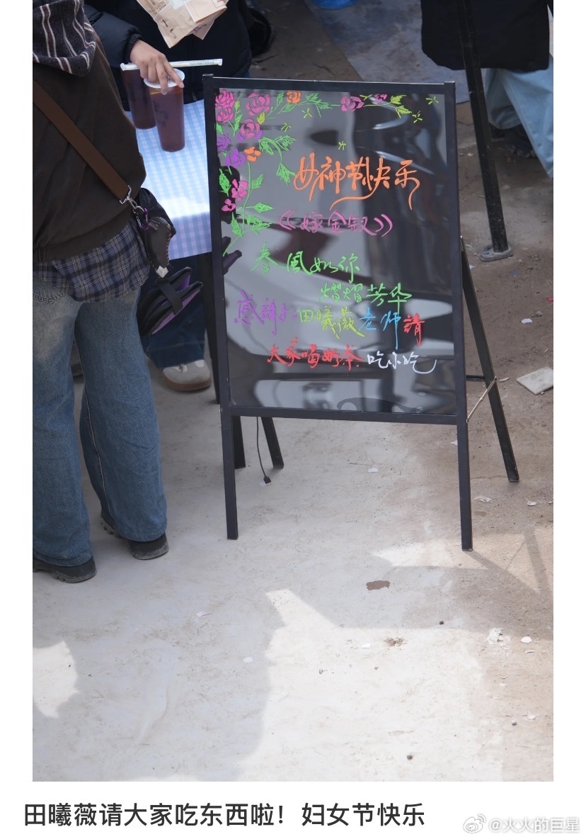 田曦薇妇女节请剧组喝奶茶田曦薇妇女节请客剧组奶茶