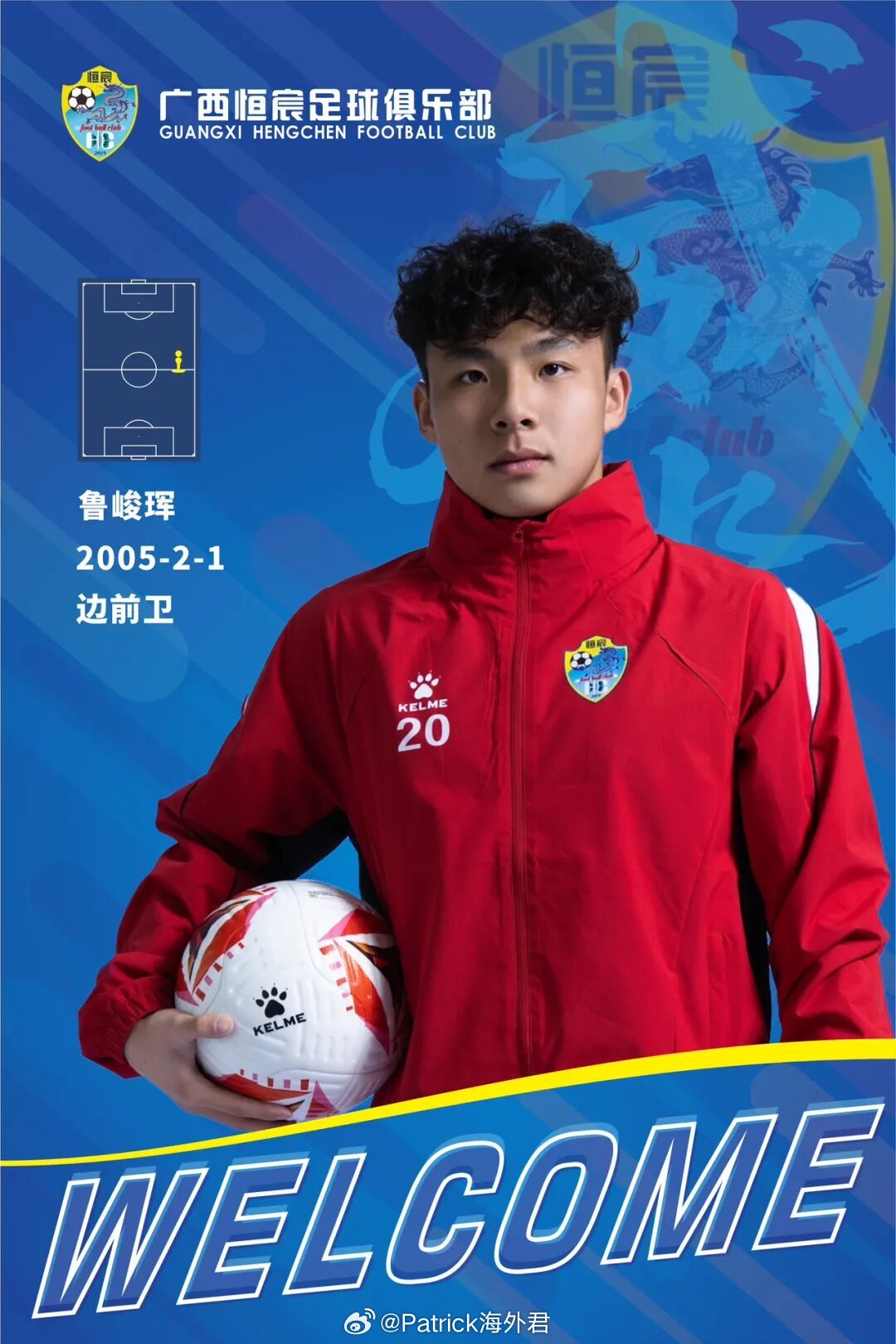 21岁中场 鲁峻珲 回国加盟中甲广西恒宸。
