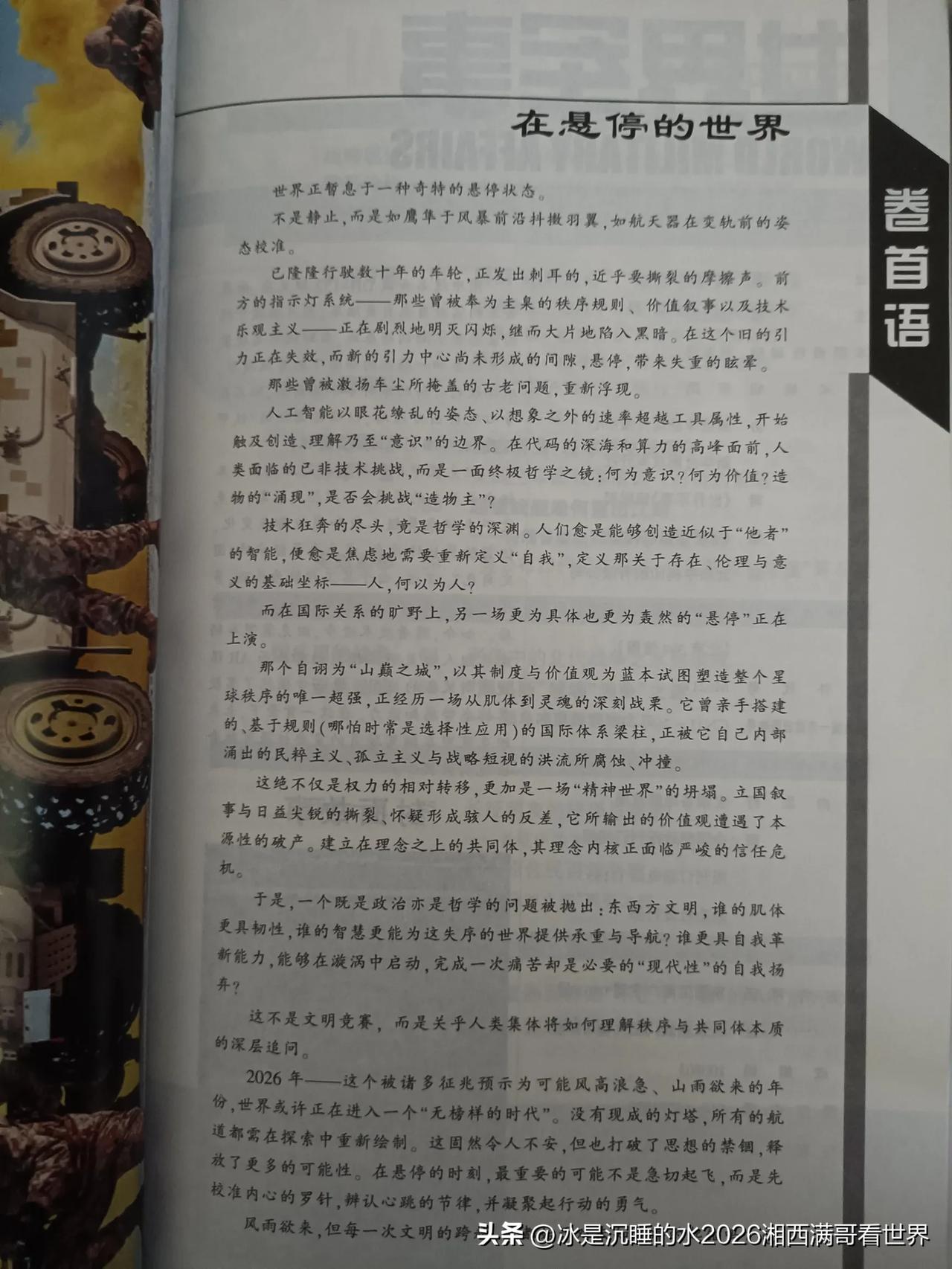 时隔36年的重逢,1990年第期的《世界军事》杂志与2026年第3期的《世界军事》杂志同框,让人恍如隔世,时间过得真快啊! 36年前,我还是个中学生,感觉还是共产主义接班人,对未来充满憧憬与热情。世界政治、军事格局还不了解,只热衷讨论美国、苏联全球争霸、“爱国者”大战“飞毛腿”、中东地区霸主是伊拉克总统萨达姆侯赛因;36年后,世界地缘政治格局大变革,苏联早就没了,俄罗斯与乌克兰在延续CCCP的内战,真的是骨肉相残;美国联手以色列对伊朗发起大规模的军事打击,试图推翻政教合一的伊朗政权,掌控霍尔木兹海峡的通行权与石油、天然气;中国大陆经过多年潜心发展经济,已经成为世界第二大经济体,军事、政治、科技、老百姓的生活等方面脱胎换骨、欣欣向荣。 这期36年前的《世界军事》杂志也是很多70、80后军迷的青春岁月与情怀,难以言表,只能说:“珍重!”