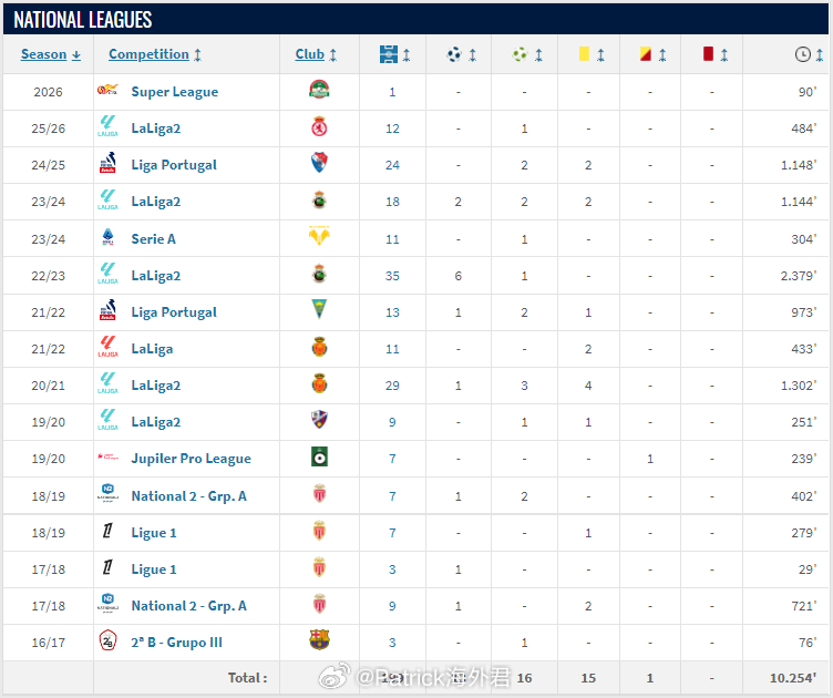 此后九年时间里,姆布拉辗转多支球队,三次冲击五大联赛未能站稳脚跟,最终留下西乙103场9球8助 以及 法甲&西甲&意甲各10场左右的成绩单。2022/23赛季是姆布拉的高光赛季,24岁的姆布拉代表桑坦德竞技出战西乙35次、打进6球,这也是他职业生涯唯一一次单赛季出场超过1500分钟。