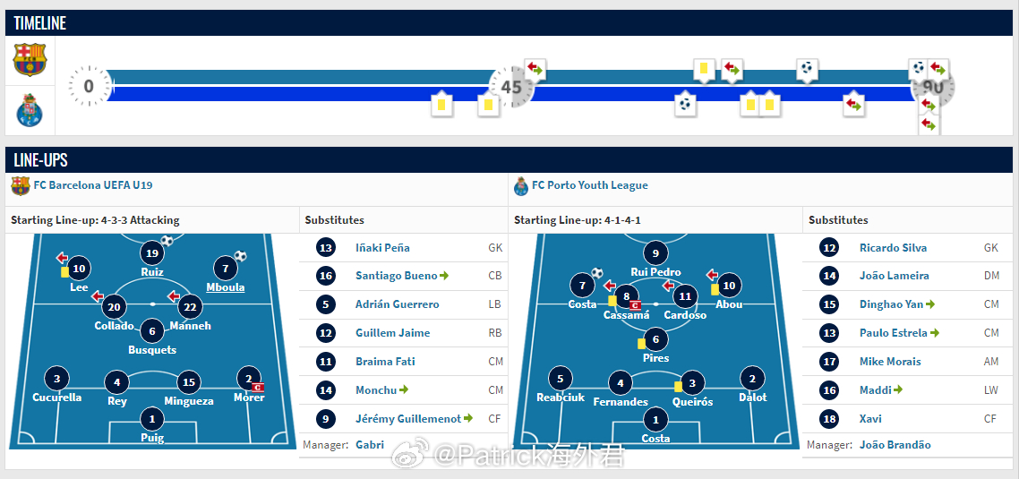 U16第二年:● 巴塞罗那 U19B队 亚军- 联赛(2) 出场3次、首发2次● 巴塞罗那 U16A队 冠军- 联赛(1) 进入名单28次、首发23次,进20球,射手榜第2名