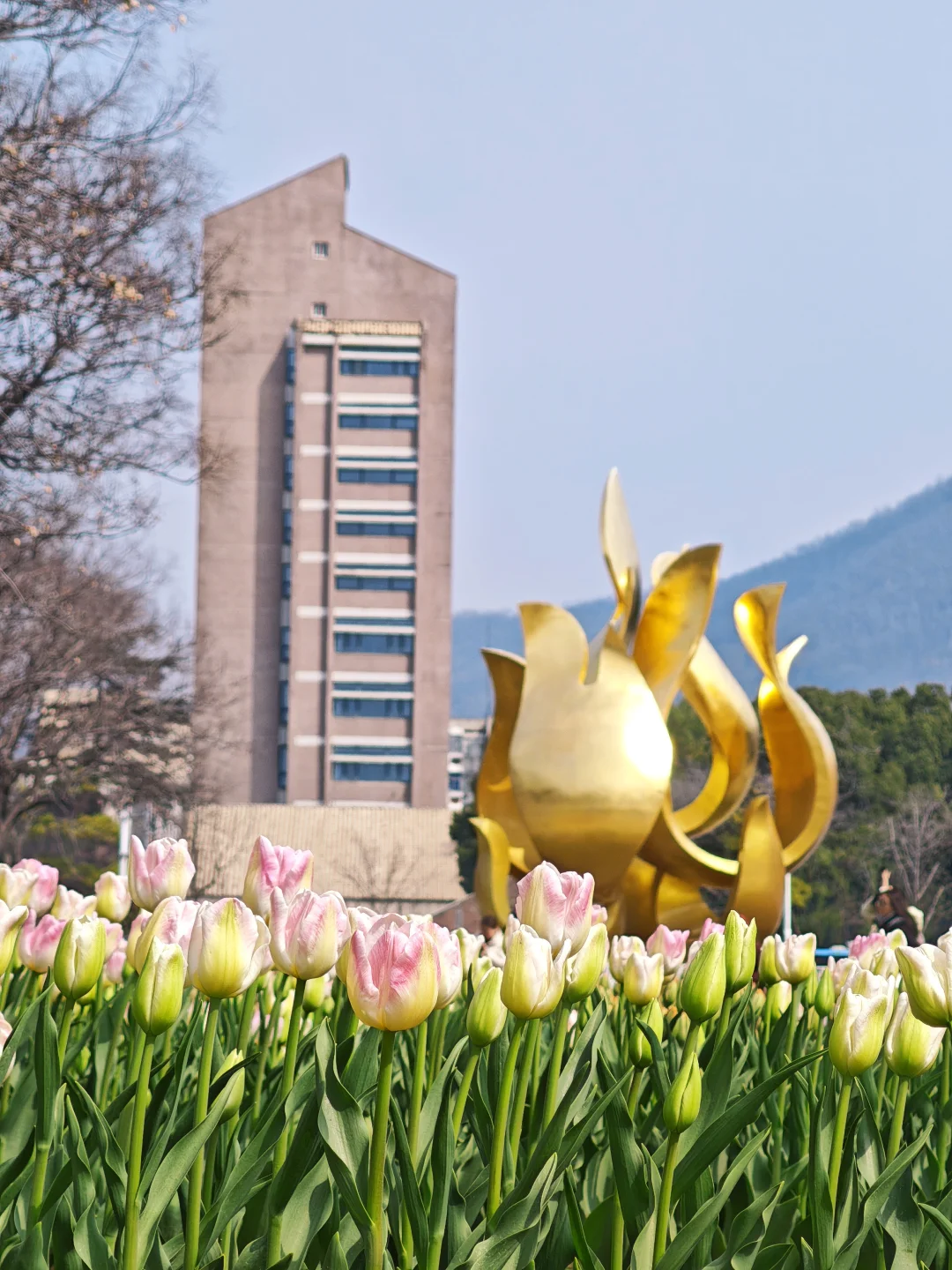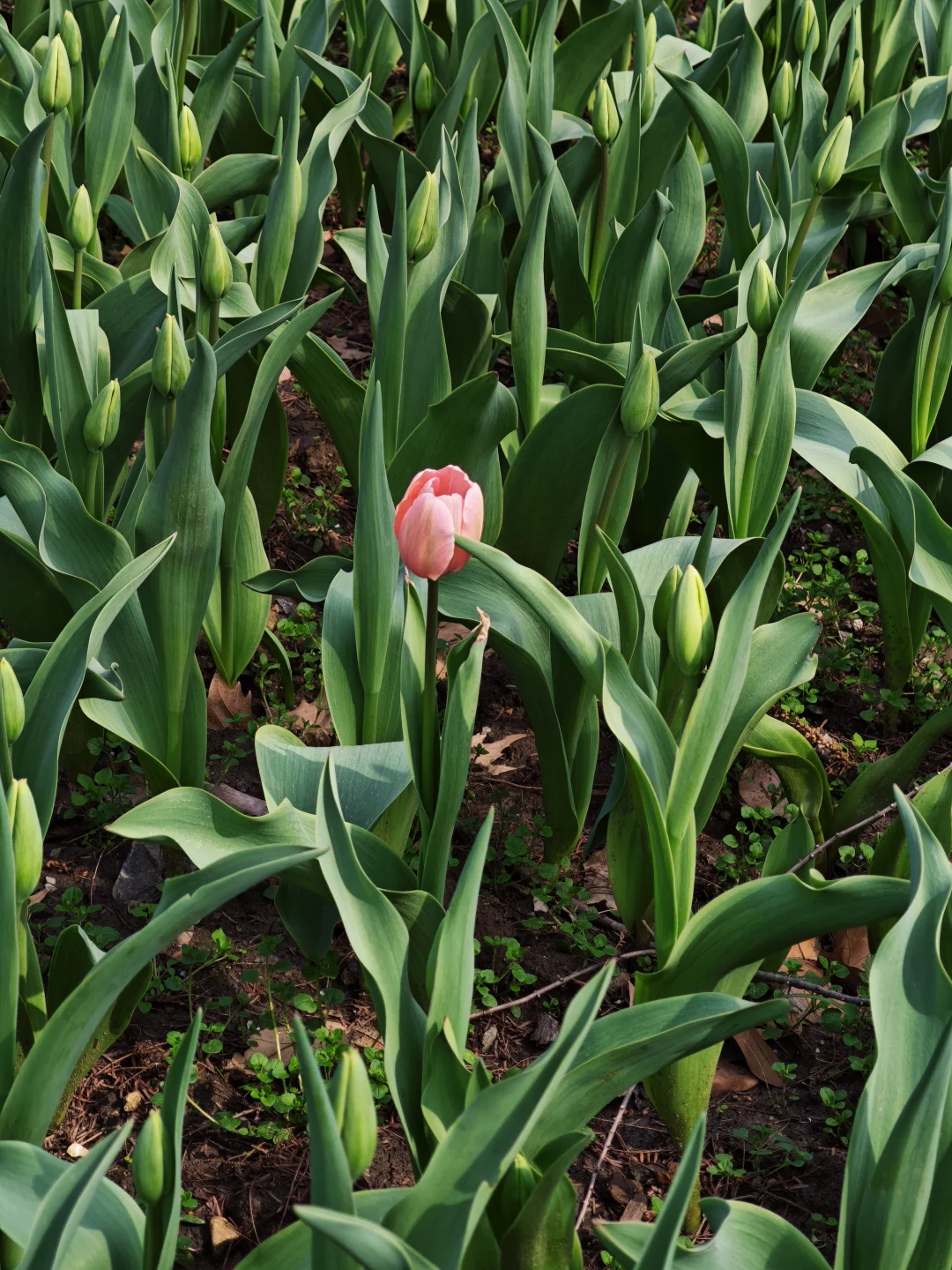 南园的郁金香目前基本还没开,稀稀落落地有三两朵开啦,剩下的都还算小花苞