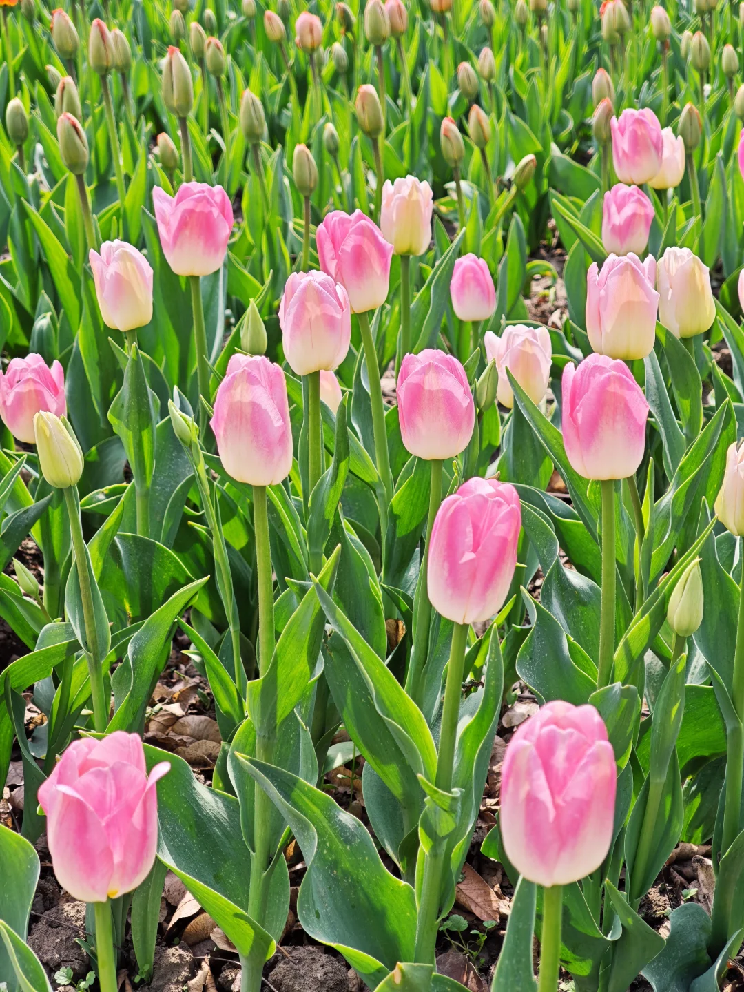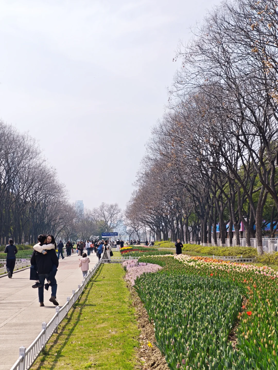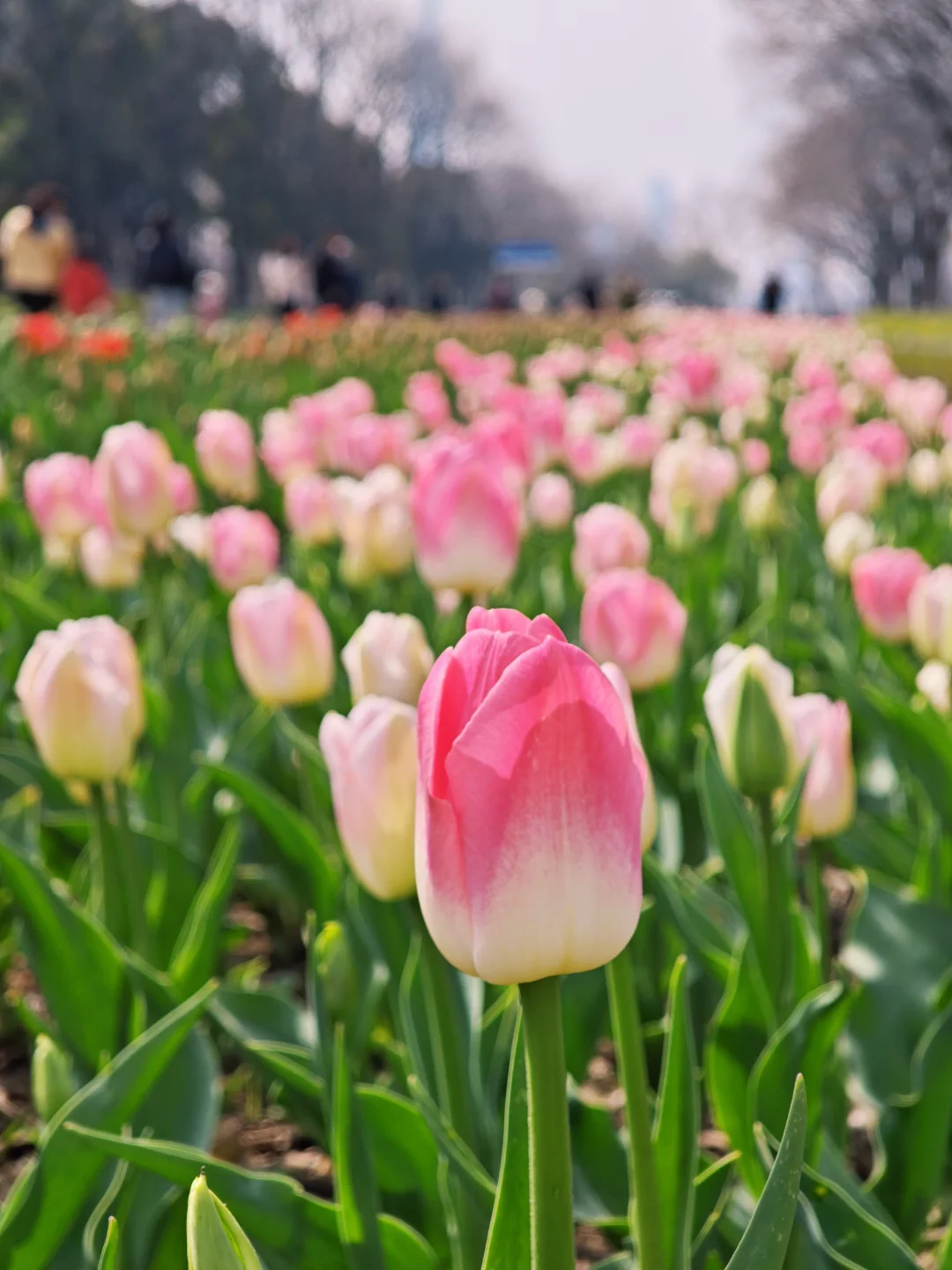 情侣园的郁金香已经开始大面积绽开啦,粉的、红的,非常的显眼~