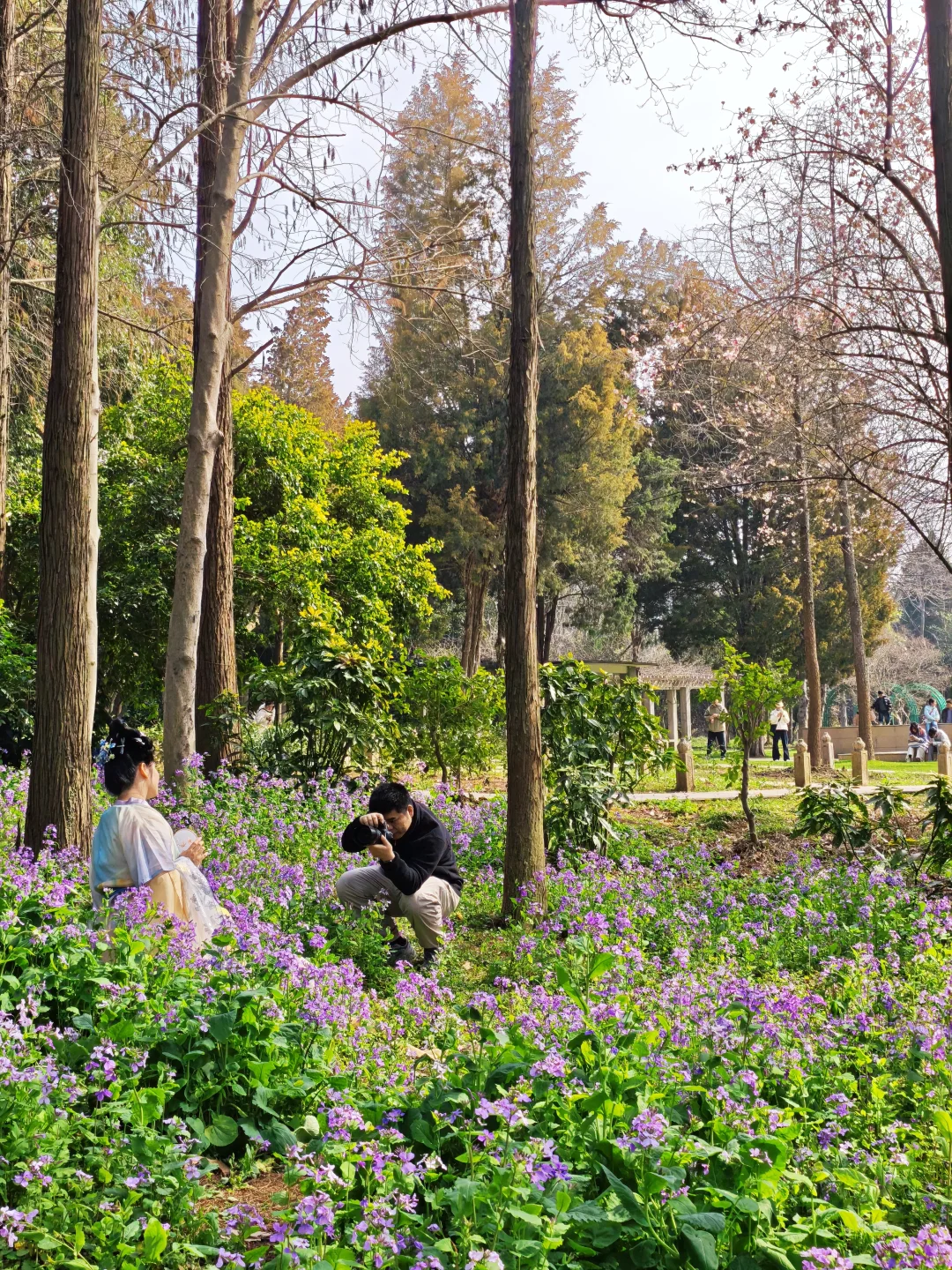 除了早樱外,北园在还有大片的紫色二月兰正在盛开,可以一同观赏哦~