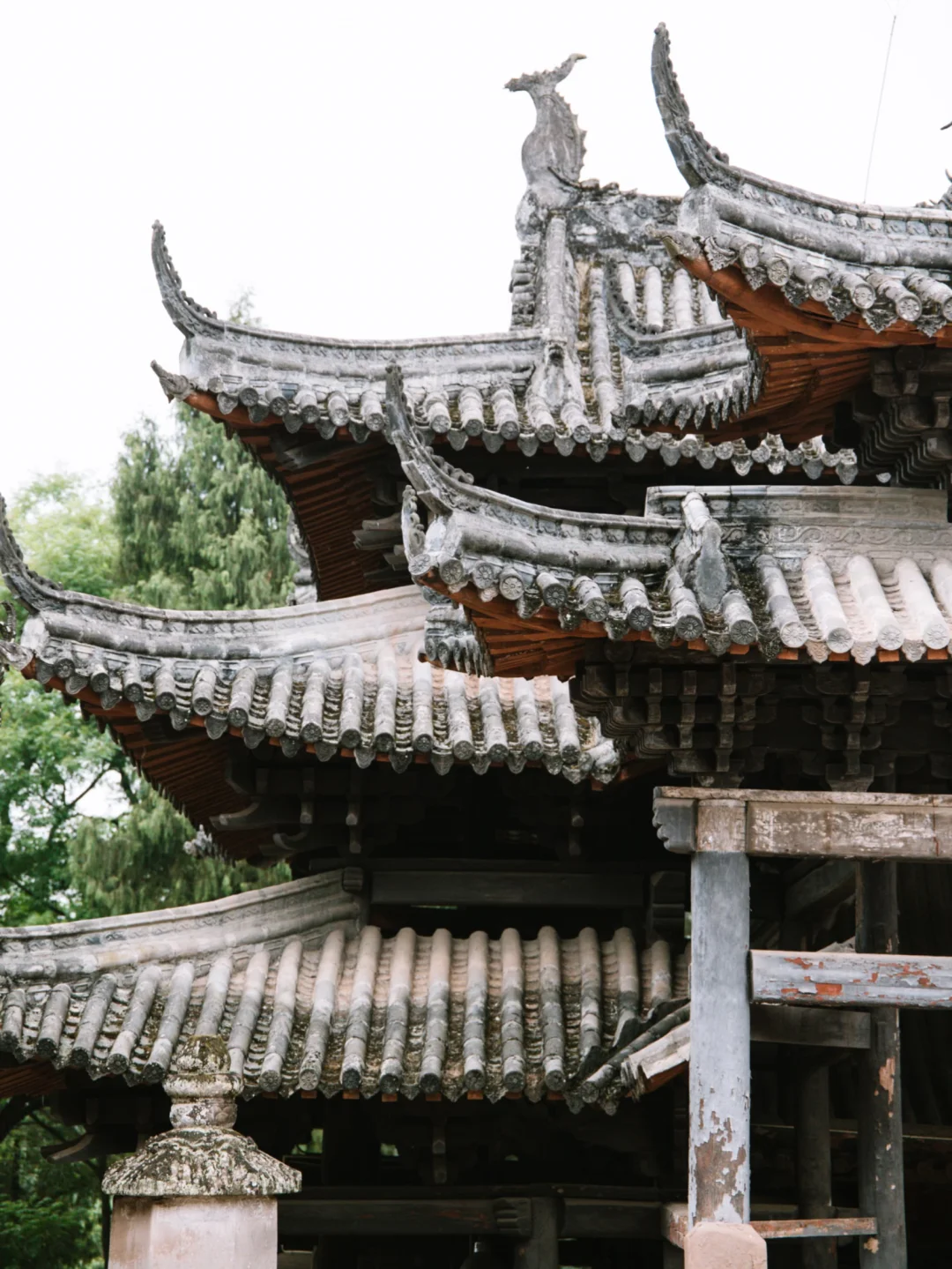 ▪️整个石亭未用一钉一木,从柱、枋、檐、脊到椽、斗拱,全部由石材雕琢而成。檐下斗拱饰以彩绘,更是逼真。