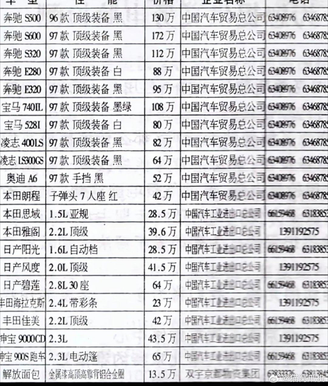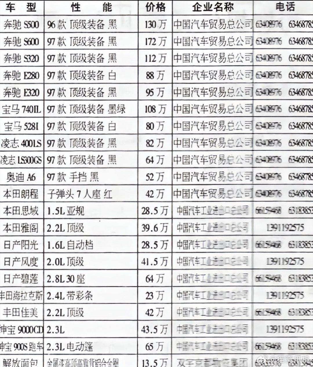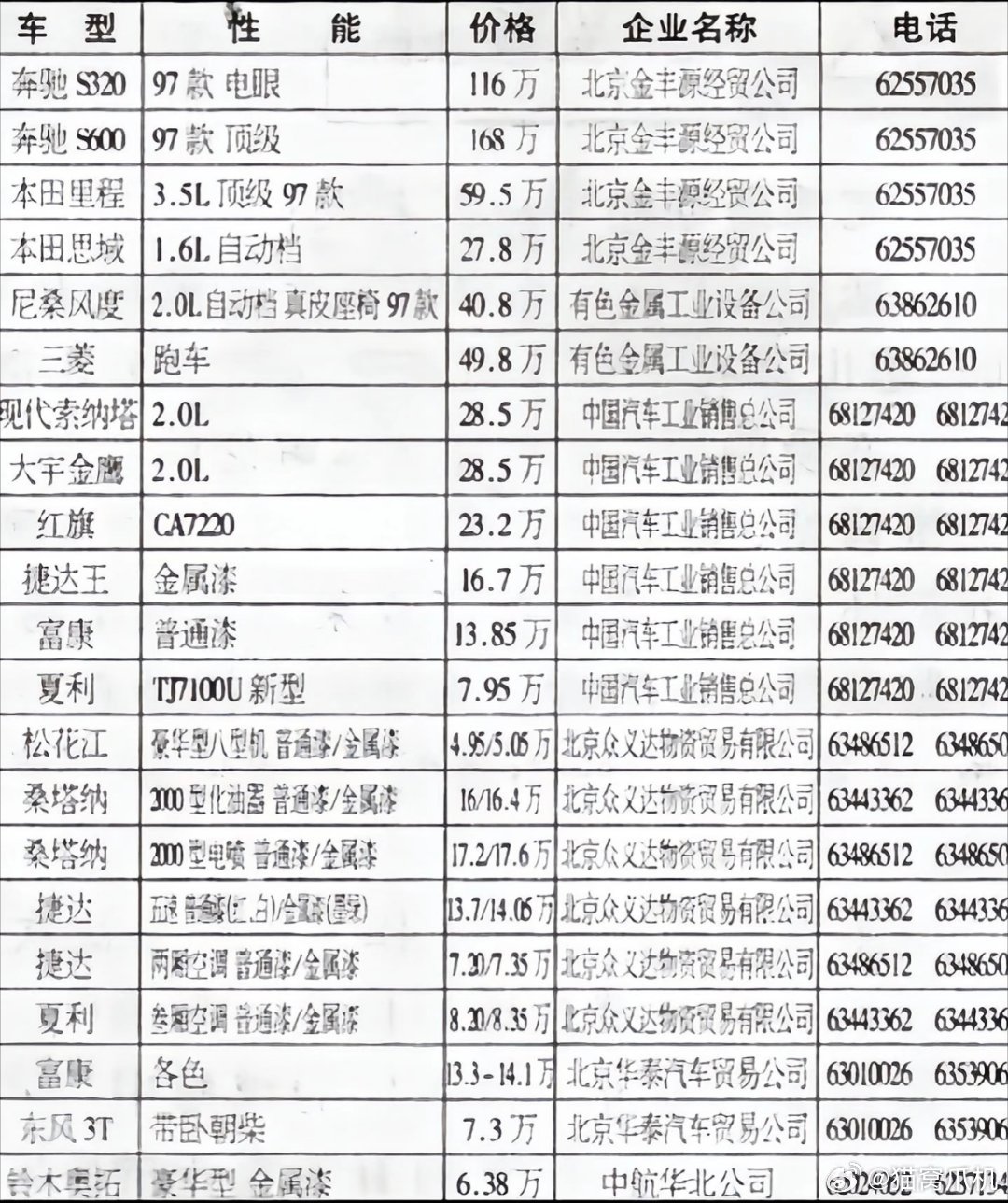 1996年中国的汽车价格,稍微是个牌子都是几十万,当时能买得起的人应该不多吧。让