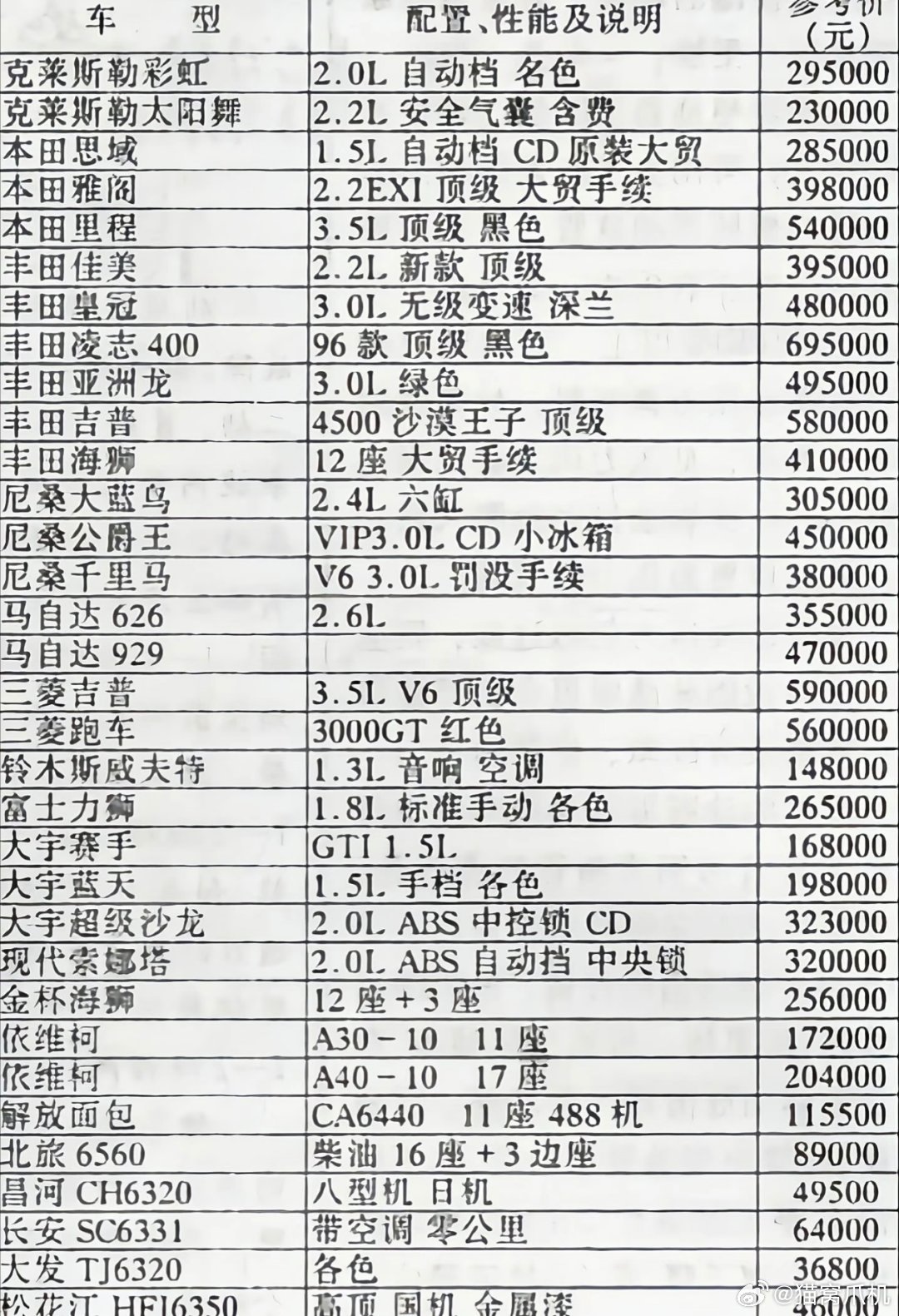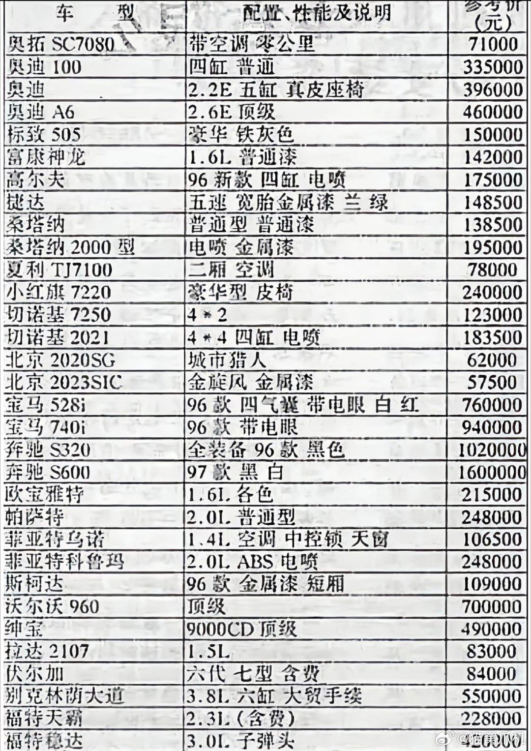 1996年中国的汽车价格,稍微是个牌子都是几十万,当时能买得起的人应该不多吧。