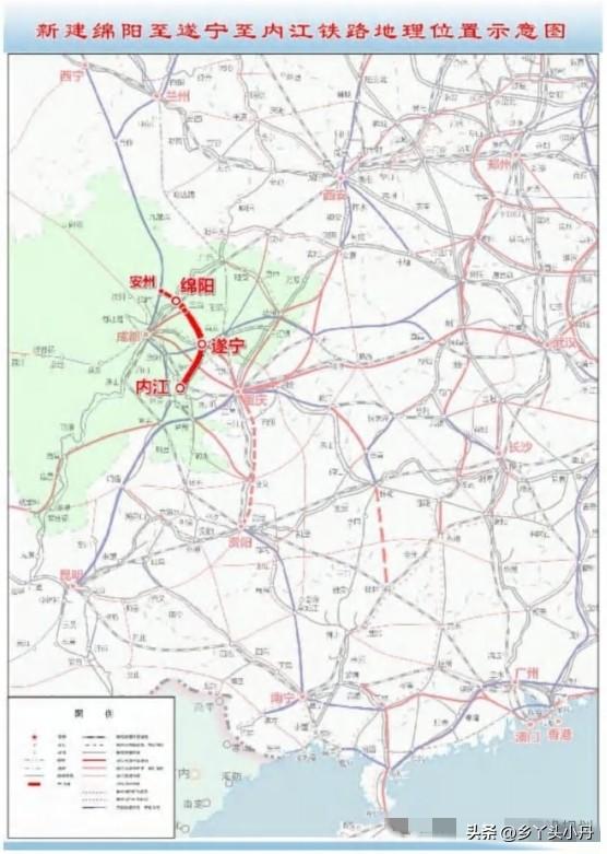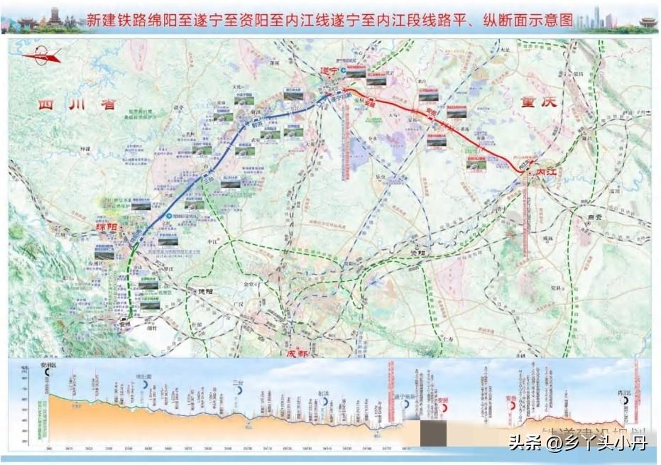 好消息!时速250公里!这条备受期待的绵遂内铁路又有新进展。近日,新建绵阳至遂宁至资阳至内江铁路遂宁至内江段正式公示,标志着成渝地区双城经济圈中部又一条重要交通动脉即将从蓝图驶入现实,看看经过你的家乡吗? 据悉,绵遂内铁路由绵阳至遂宁段、遂宁至内江段两段组成,此次公示的是其关键组成部分——遂宁至内江段。线路从在建的绵遂段遂宁高新站内江端引出,一路向南,经聚贤镇、玉丰镇,跨越琼江后,在安居区东南侧的柿子湾设安居站,为沿线城镇带来更多发展机遇。 出站后,铁路沿遂宜毕高速公路西侧延伸,穿过通贤镇、长河源镇、石桥街道,最终抵达安岳县城东南侧,与在建的成渝中线高铁在此交汇并实现“十字共站”,形成重要的区域换乘枢纽。 线路继续向南延伸,经思贤、文化、清流、大平、南薰、双桥、双才等乡镇,宛如一条活力纽带,串联起沿途的田园与村落,最终引入内江北站,与绵泸高铁内自泸段实现贯通。届时,从内江北站出发,向东可便捷连接泸州、自贡,向北经遂宁直达绵阳,铁路网络的互联互通将为川中、川南地区注入强劲的交通动能。 项目正线将按照高速铁路标准建设,采用双线电气化设计,设计时速达到250公里。这意味着未来旅客可以享受更加快速、舒适的出行体验,城市间的时空距离将进一步压缩。根据可研批复,该项目总投资约208.83亿元,建设工期为4年。 绵遂内铁路的修建,将有效填补成渝地区主轴中部的高铁空白,强化绵阳、遂宁、资阳、内江等重要节点城市间的快速联系。 当钢铁巨龙飞驰在川中丘陵与沱江河谷之间,带来的不仅是速度的提升,更是区域连接的重要枢纽,我们期待四年后,这条动脉的全线贯通,为巴蜀大地谱写更加便捷、繁荣的新篇章,值得期待!