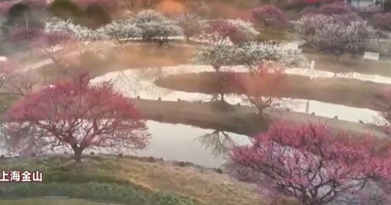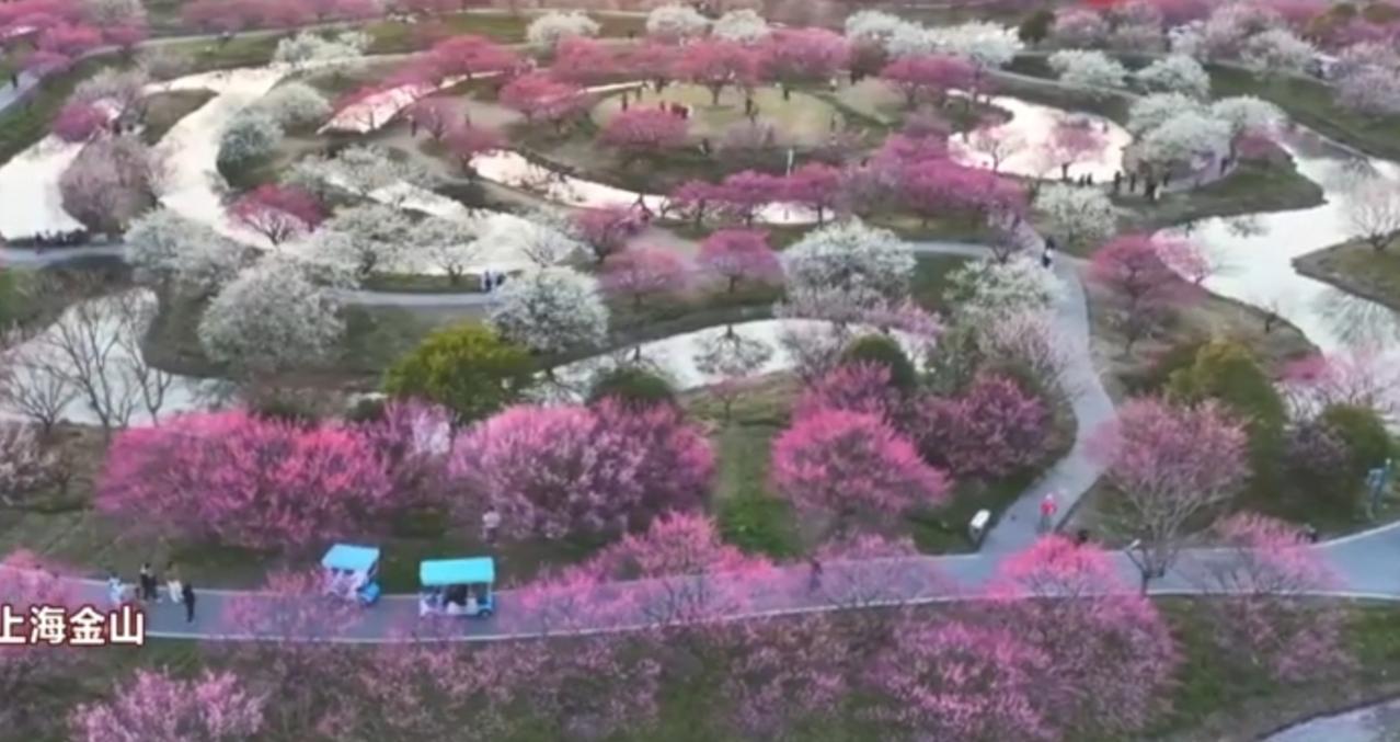 春日里,上海金山与浙江杭州共赴一场浪漫花约。金山梅林依水而绽,粉白红梅交织错落,曲水环绕间,绘就一幅灵动的江南水墨画卷。杭州红梅满枝,粉艳灼灼,漫山繁花如云似霞,游人漫步花径,沉醉在这满城春色里,尽赏江南春日的温婉与绚烂。