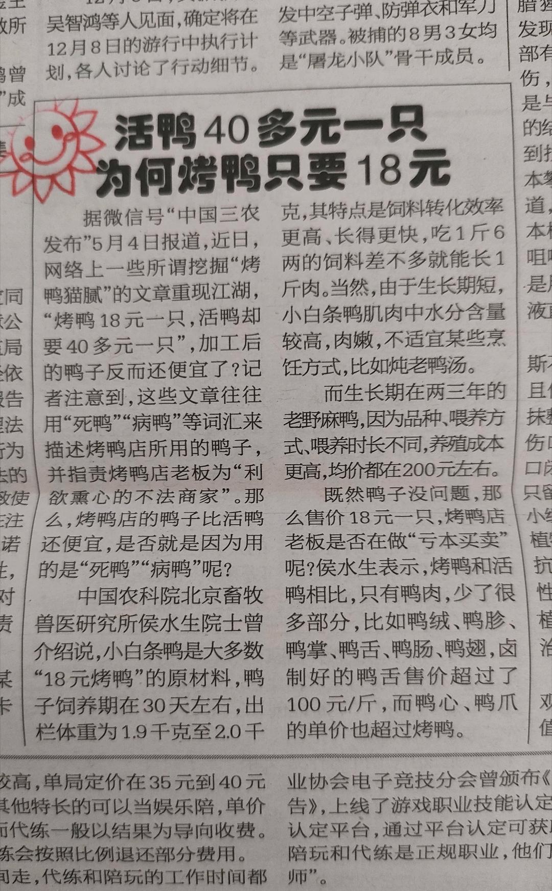 活鸭40元,烤鸭18元?别骂商家黑心,这才是最狠的“价值拆分” 刷到一个灵魂拷问:市场活鸭40元一只,街边烤鸭却只要18元,难道商家是在做慈善?其实你骂错了,这不是黑心,是工业化时代最精明的“羊毛出在羊身上”。 首先澄清:18元烤鸭用的不是病鸭,而是专门的“速生肉鸭”——樱桃谷鸭,28天就能出栏,规模化养殖下,单只成本仅10元左右,比散养麻鸭便宜一半还多。 更关键的是,你买的40元活鸭是“完整资产”,带毛、内脏、鸭掌、鸭翅,而18元烤鸭的原料,是被“拆过一遍”的白条鸭。鸭绒拿去做羽绒服,鸭舌、鸭脖、鸭肠单独做成卤味,每一样都比鸭身值钱,鸭身反而成了“边角料”,批发价只要7-9元。 商家再算笔账:白条鸭+冷藏运费3元+烤制成本2元,总成本不过14元,卖18元还能净赚4元,薄利多销稳赚不赔。 说白了,活鸭卖的是“整只价值”,烤鸭卖的是“剩余价值”。你以为捡了便宜,其实商家早把高价值部位变现,用鸭身给你演了一出“低价戏码”。放心吃,正规渠道的烤鸭都经过检疫,只是口感不如活鸭紧实,用来解馋完全没问题~ 一只活鸭40元 烤鸭为何只要18元