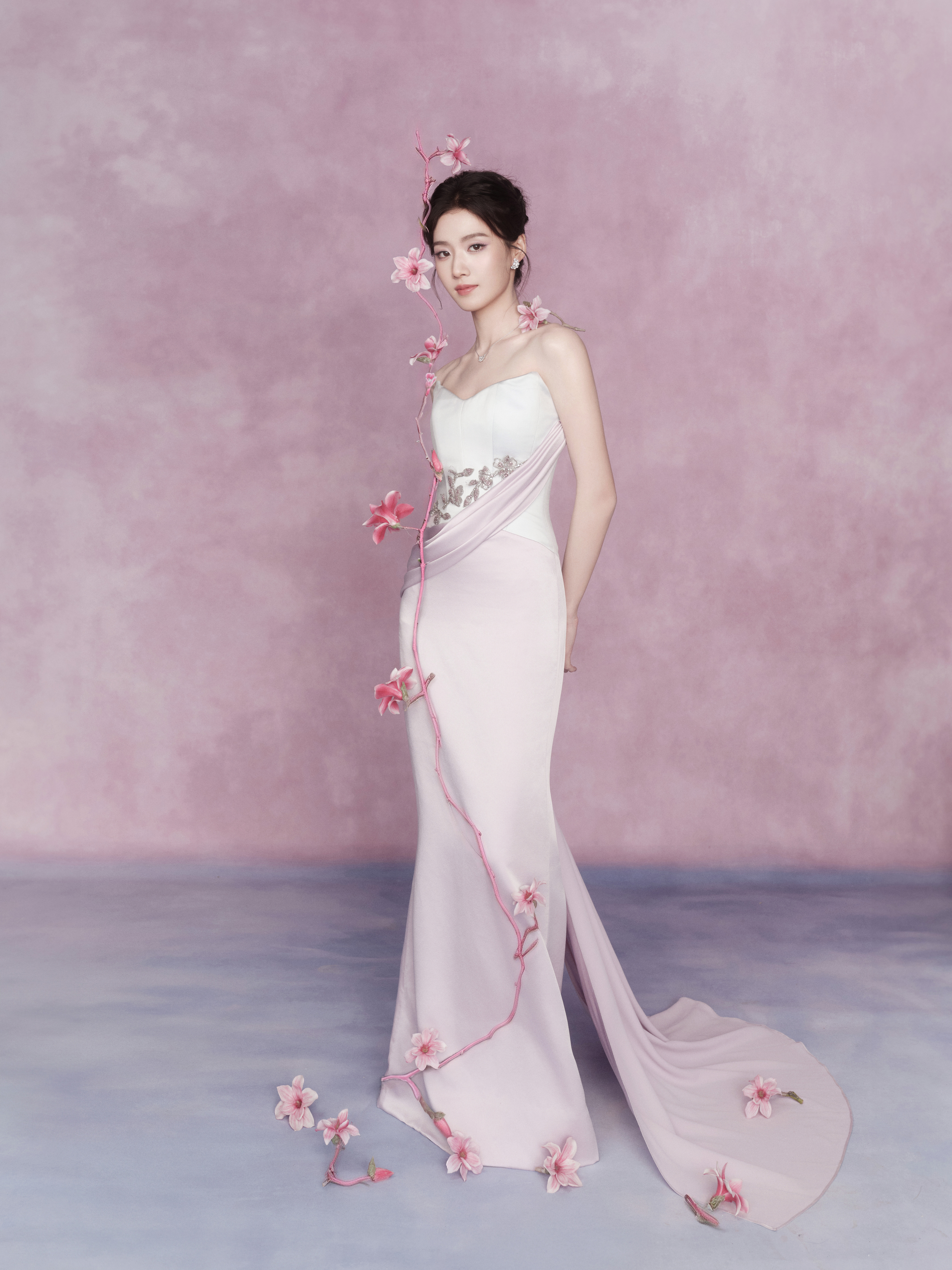 演员卢昱晓出席2026电视剧品质盛典造型图集,身着一袭珠花刺绣抹胸拖尾礼服搭配Chopard萧邦珠宝,今日份温柔甜美范的噜噜晓 🌸~