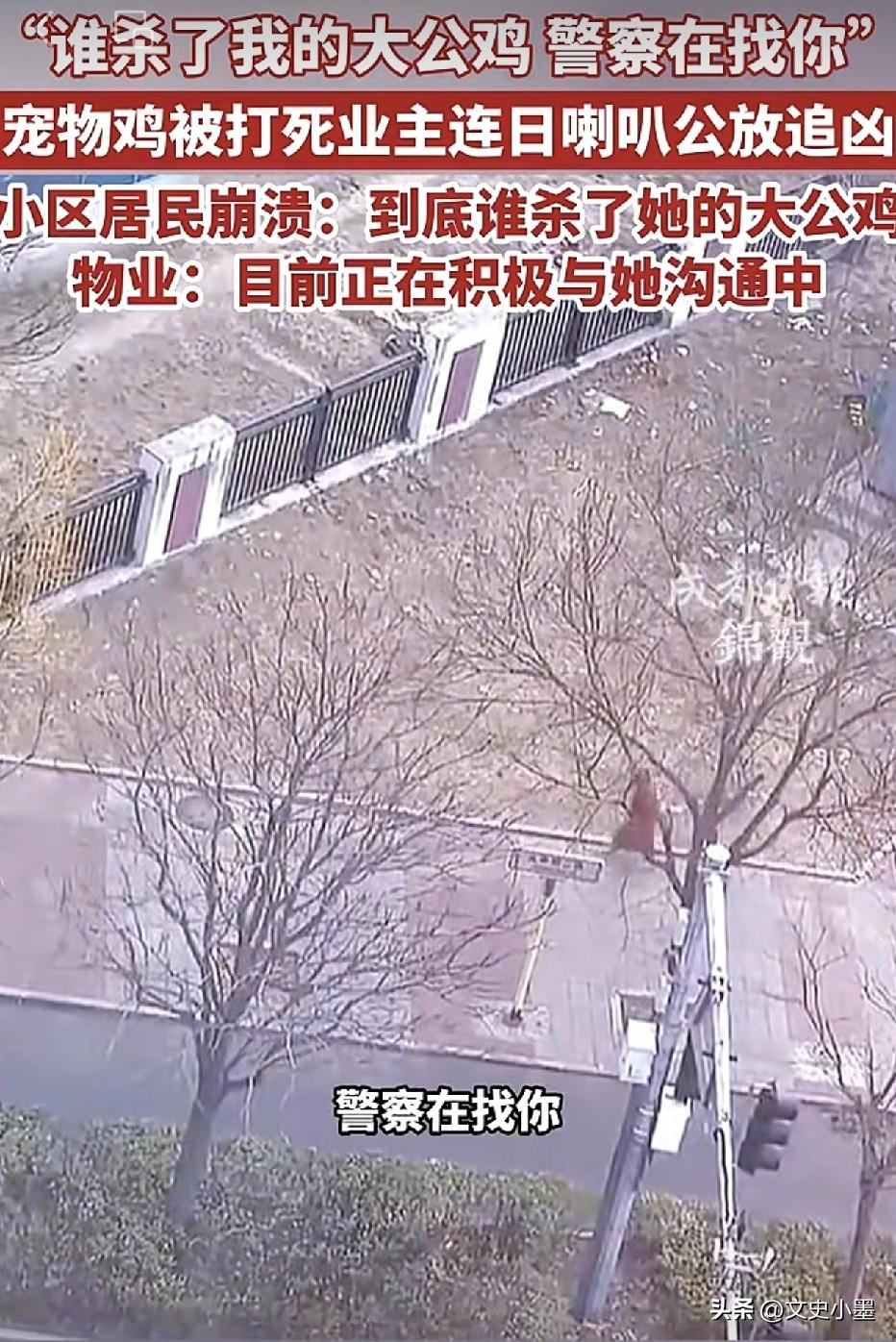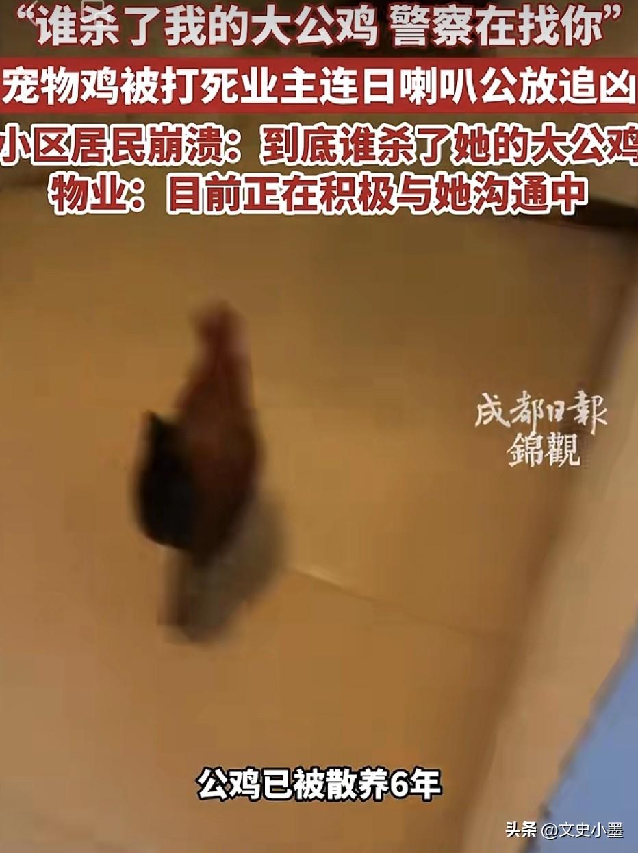 “谁杀了我的大公鸡,警察在找你”! 北京通州某小区内一位女士,因为自己养了6年的宠物大公鸡被打死了,非常气愤,拿着喇叭在小区到处喊话,邻居们不堪其扰,接近崩溃,纷纷表示到底是谁打死了她的大公鸡,快出来承认吧! 可以看出,这名女子对她的大公鸡有了很深的感情,大公鸡遇害让她情绪十分低落,誓要为大公鸡讨个说法! 据悉,她的这只大公鸡平时散养在小区里,已经6年了,很多邻居都认识它! 既然是公鸡,它每天都会打鸣吧,如果正常时间点打鸣还好些,要是天不亮就打鸣,难免会吵到一部分人。其次,散养大公鸡会到处拉屎吧,鸡毛也可能会四处飘落,估计是有些人已经忍不了了吧! 目前,该女子仍然每天拿着喇叭吆喝,邻居们被吵的崩溃了,希望凶手快点出来,早日结束这场闹剧!另外,小区物业及社区也多次找她沟通,希望她能放下执念,既然公鸡已经死了,会帮她慢慢调查杀鸡凶手,请她不要再扰民了!
