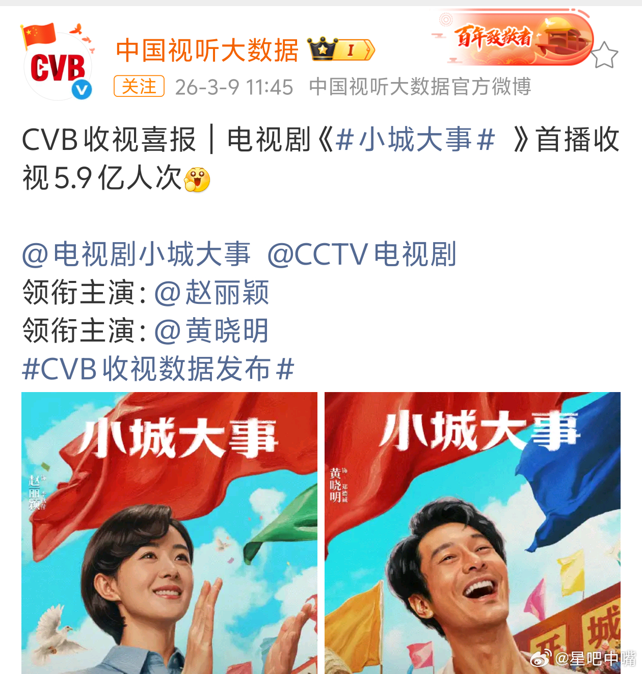 85🌸央八电视剧cvb观看人次对比:杨幂: 36集《生万物》 8.8亿赵丽颖:40集《小城大事》5.9亿
