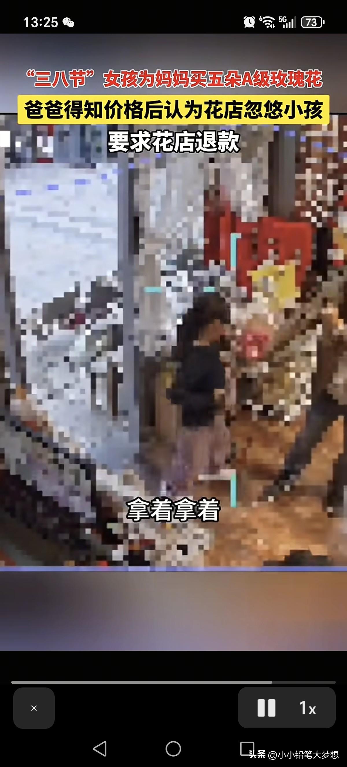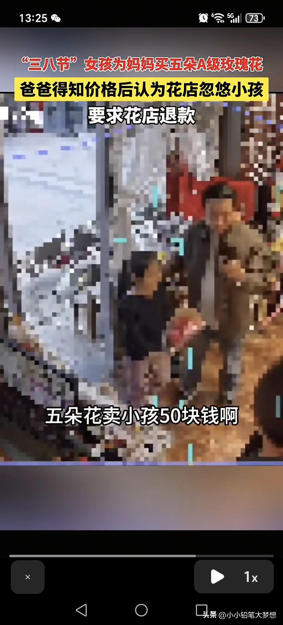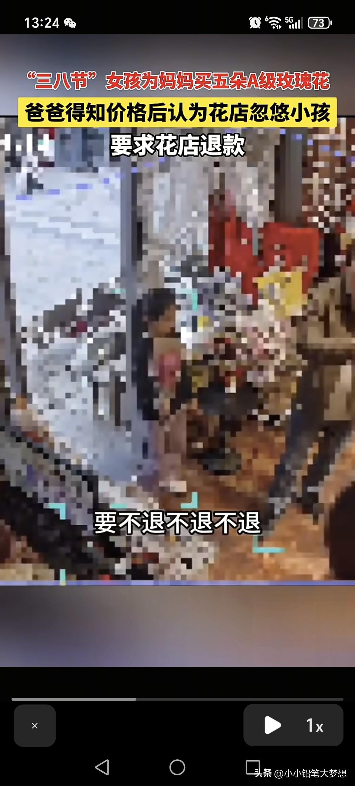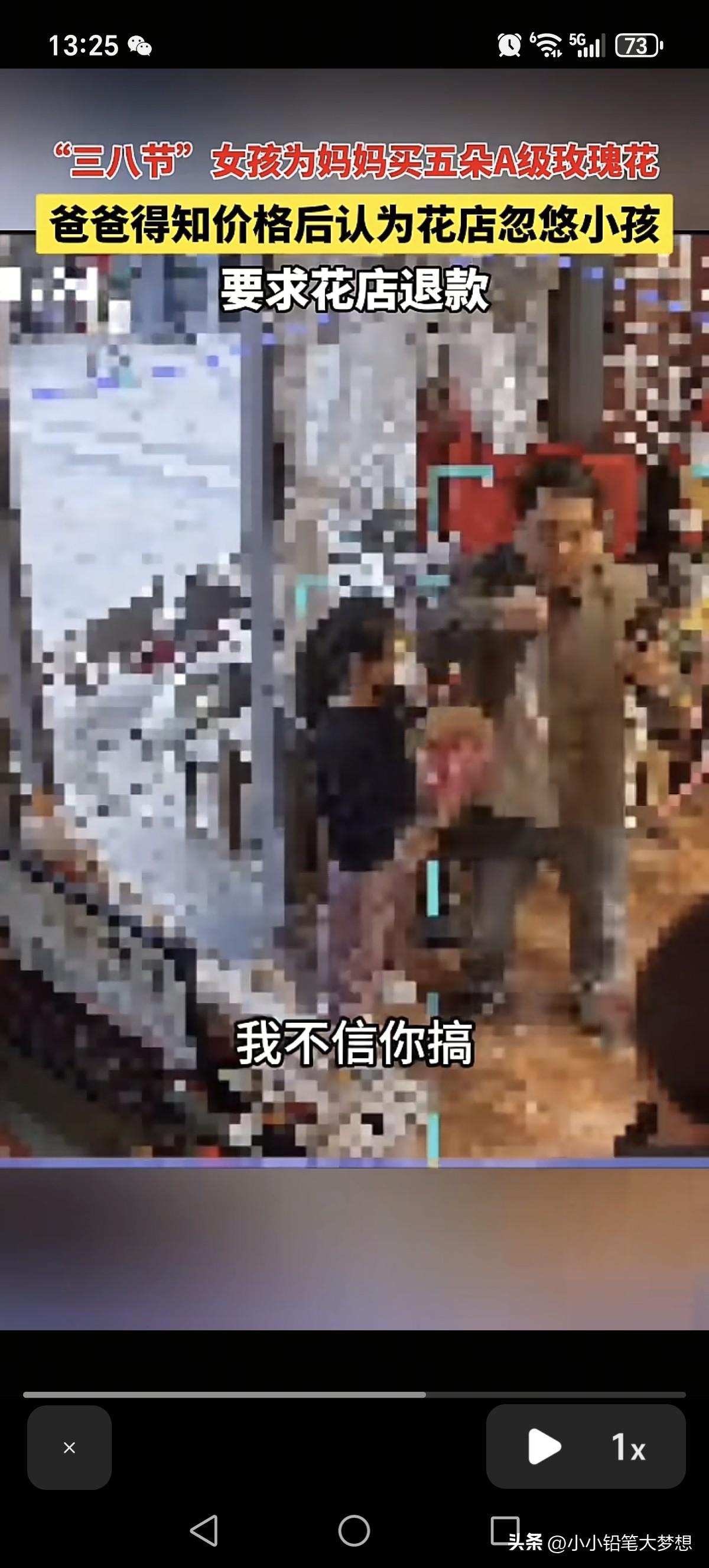 “今天这事要有多大就有多大,今天我就让你店开不下去!”三八妇女节,一位爸爸的带着女儿来到了花店,他指着女儿手中的花对着老板怒气冲冲的喊:“这5朵花卖50块钱?!” 花店女老板镇定的说:“对呀,10块钱一枝啊!她已经买了挺长时间了。” 这位爸爸接着吼:“好,今天这事儿要有多大就有多大!”然后这位爸爸就举起了手机,对准了发现老板娘录起了视频! 这个时候花店另外一个男的出现在监控,他对着这位爸爸说:“你这是要干啥?” 花店女老板对着这个闻讯而来男的说:“你先报警吧!” 这个爸爸就对着这个女老板继续叫板:“这花退不退?” 这会这个花店这个男就接话了:“这个没办法退!” 这个爸爸听了之后很生气,提高了嗓音,再喊一句:“你退不退?!” 男老板看他态度非常不好就说:“你这种态度没办法退!” 这位爸爸听了这话就发飙了:“你欺负小孩,是不是你忽悠小孩,是不是?就让你这家店开不下去,你信不信?” 这时候花店男就接话:“我不信!你搞啊,你搞啊,你随便搞!” 这爸爸没想到花店男不吃硬的,然后他抢过了小孩手中的花,对着视频里面大喊:“5朵花卖小孩50块钱啊!就是这个店!” 然后他又把花塞回给小孩手上,然后对小孩发怒大喊:“拿着拿着!” 然后他还不服气的对着这个花店男放话:“今天这事我就跟你没完了!” 看到这个场景,我真的很心疼这个孩子,小女孩是想送花给妈妈,表达自己的心意,她买到了花回家的路上,应该是很开心的,但是他可能不知道50块钱对于他们家庭来说非常重要。 当这位爸爸知道女儿花了50块钱买花,所以就非常生气,这位爸爸可能没有买过花,不知道花的价格,觉得五朵花卖50块钱,他承受不了,这个店家肯定是欺负孩子,所以一怒之下带着花,带着女儿就上门大喊大叫要退! 说实话,我觉得这位爸爸这种做法真的很悲哀,就算你觉得贵,那你应该好好跟孩子说。 大过节的这位爸爸却拉着孩子去花店闹事,这孩子想要给妈妈表达情感,现在变成犯了很大的错误,这心灵创伤是来自他爸爸的,她肯定能记一辈子,这花永远是她心里一根刺。 要是我的孩子,我真的会非常开心,不在于钱,在于心意! 如果这位爸爸觉得贵,那可以自己上门说明自己家情况,态度好一点去协商,而不是一上门就冲着老板喊,这样我相信没有一个老板能接受得了,而且还先拍摄视频,完了威胁人家让店家开不下去,我相信没有人会站在他那一边,因为他的行已经构成寻衅滋事了!
