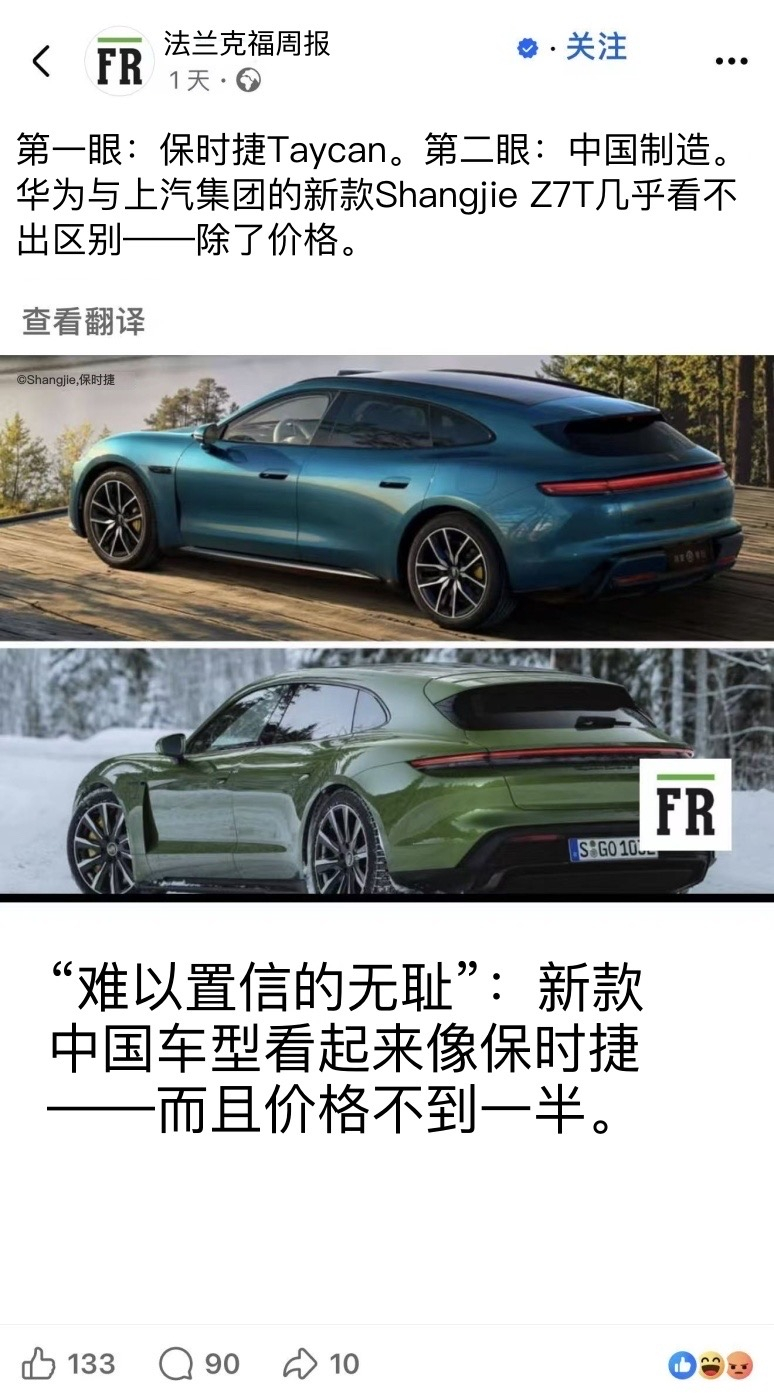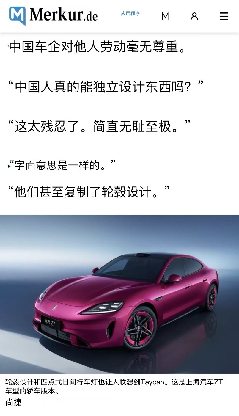 看看德媒和德国网友是如何评价Z7和Z7T。他们已经用上了Schamlos这个词,真的是非常愤怒了。以前只是讽刺一下长得像,现在真的是撕破脸了。