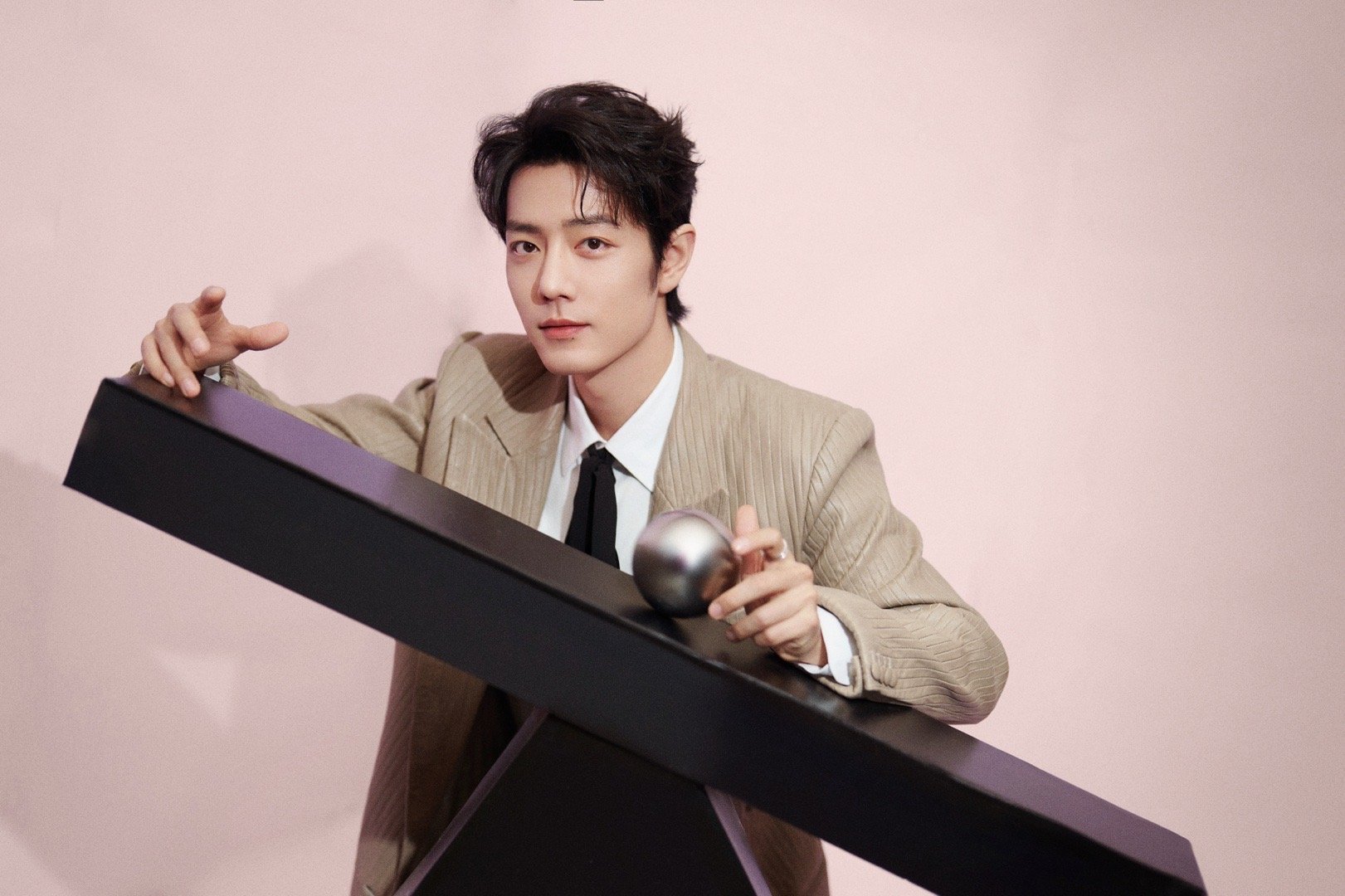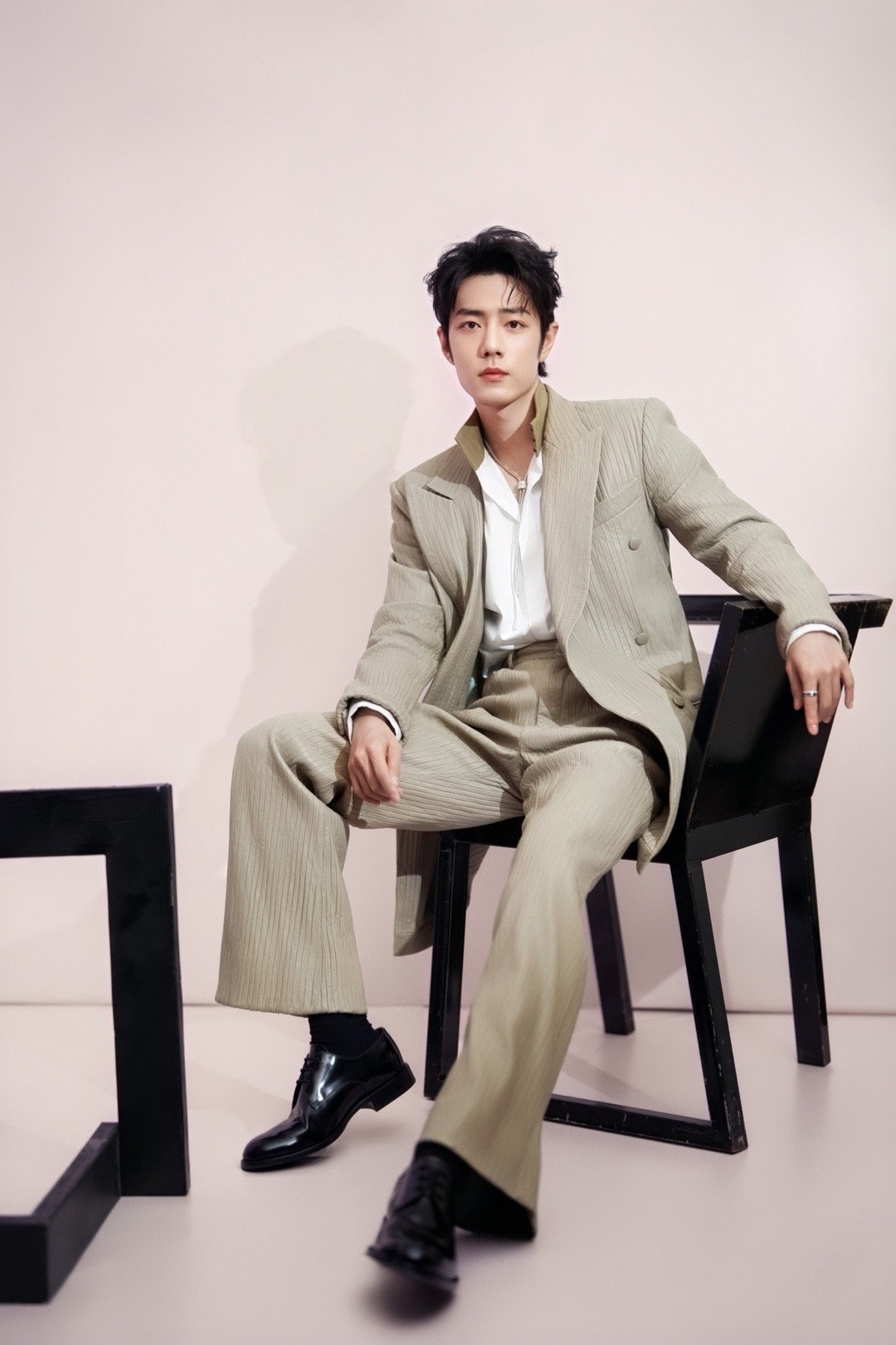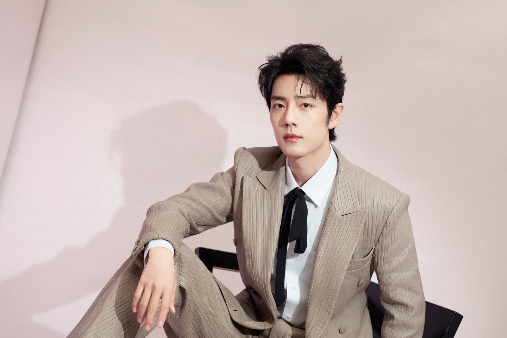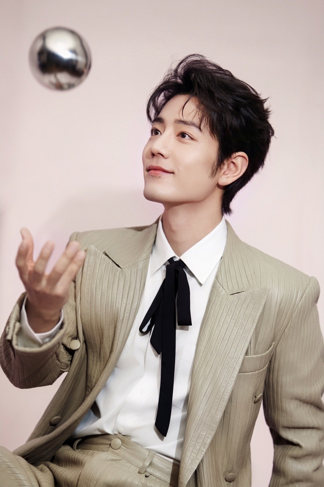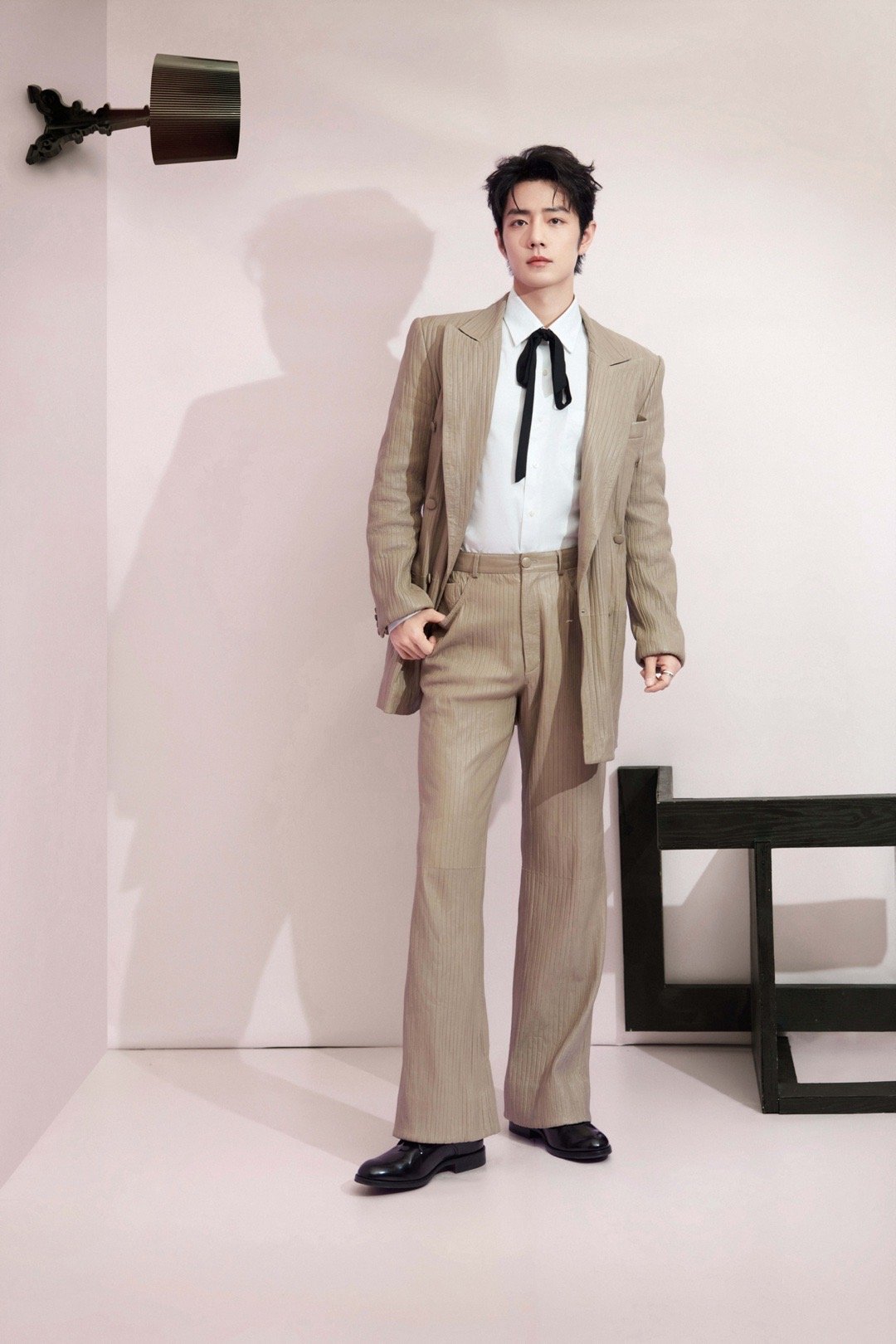 肖战 × 2026 电视剧品质盛典 造型大片,身穿Amiri 2026春夏系列浅色皮革西服套装,佩戴boucheron珠宝出镜,飘带领结亮眼点缀,优雅从容尽显绅士格调,又一套满分Look!藏海大人登场~✨