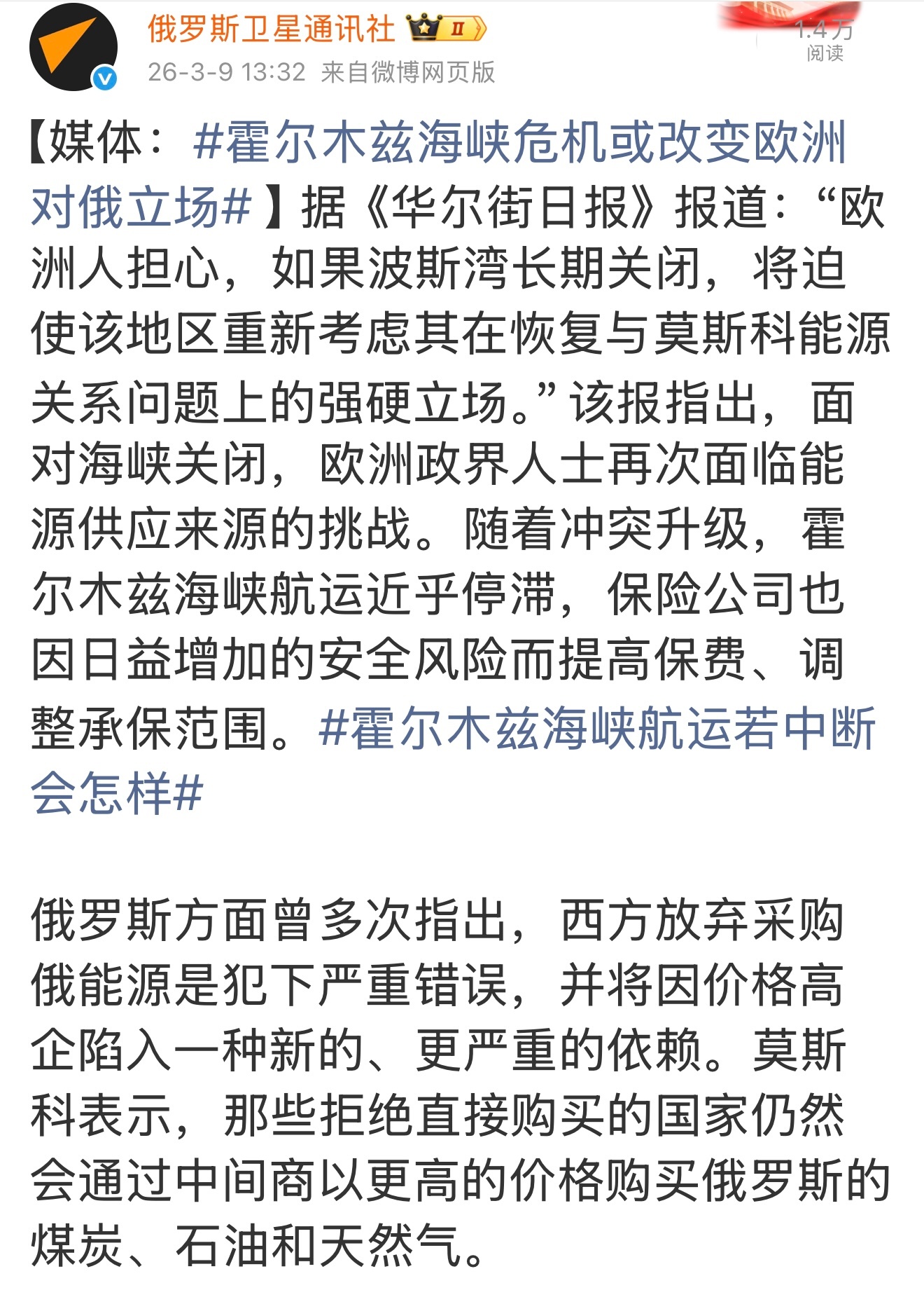 在欧洲,一边是打来打去,已经打了四年多的俄乌冲突。一边是由美以向伊朗发动的侵略战争。这场被美以突然点燃的战火一下子便烧了起来。如果说在过去四年多的时间里,欧洲还可以通过中东缓解能源短缺带来的危机,但这次就不同了。在美以联军合伙入侵伊朗的大背景下,中东的战火愈演愈烈。凸显的欧洲能源危机立马拉响了刺耳的警报。战争在美以的操控下将会持续下去。欧洲的能源压力倍增