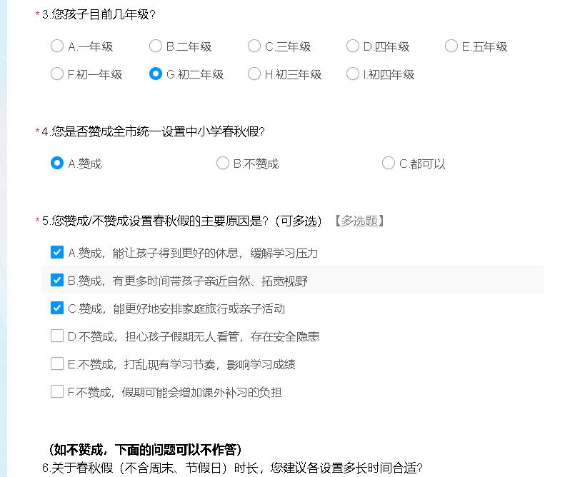 烟台的中小学生春秋假这是也要来了吗?今天儿子班主任发了一个调查问卷,问大家对春秋