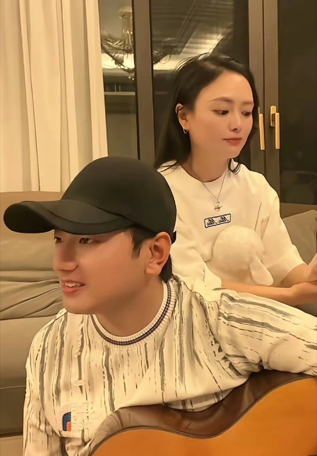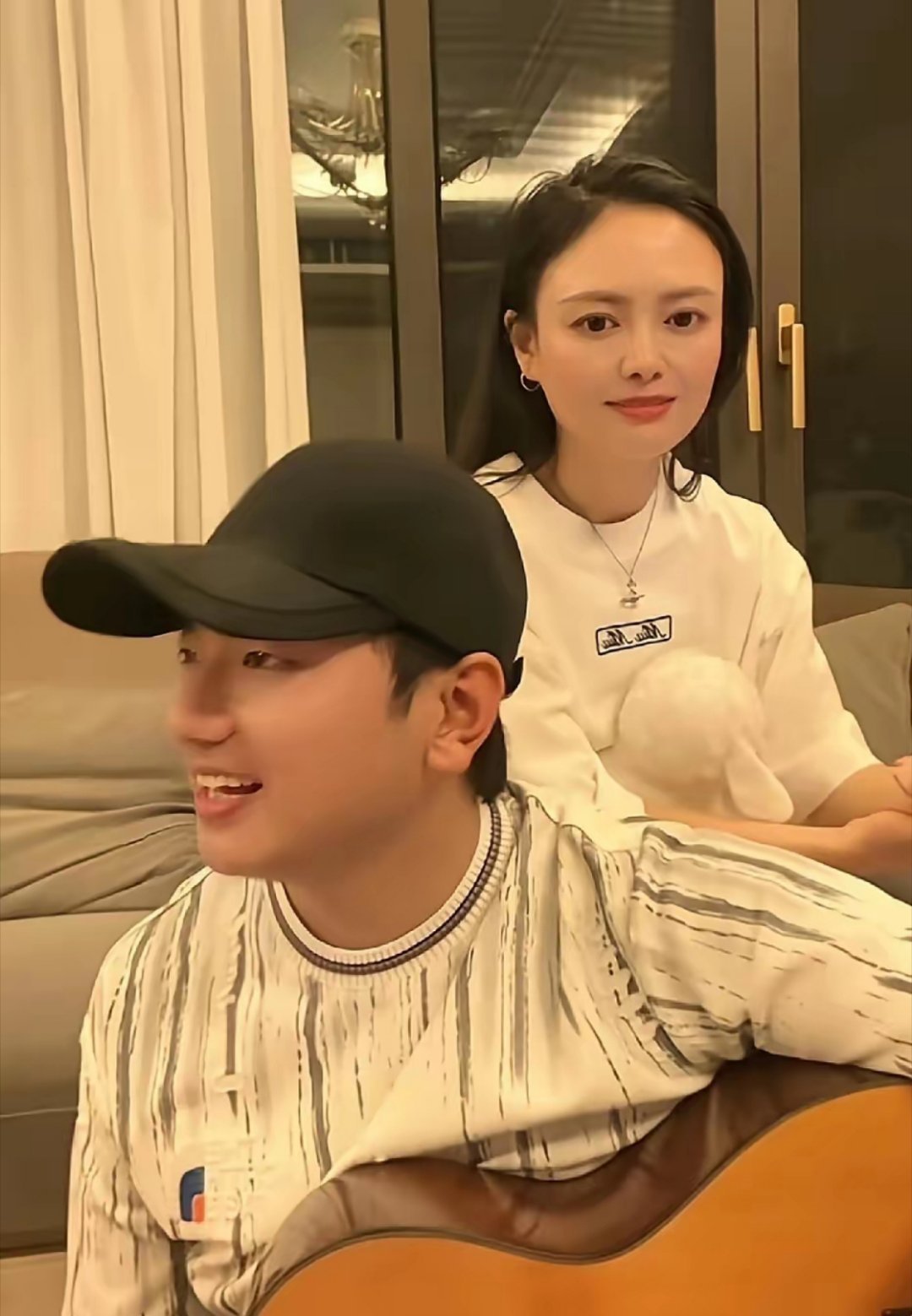 歌手海来阿木和妻子同框太甜了!他弹着吉他,妻子坐在身后跟着唱,夫妻俩感情真的很好
