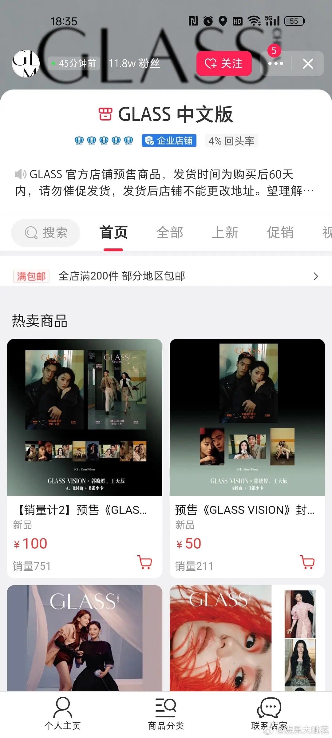 《glass》杂志微店微博双平台8.5小时近5300本单价50,销售额264750,现在远超预期了啊观众还是爱看这样的cp啊