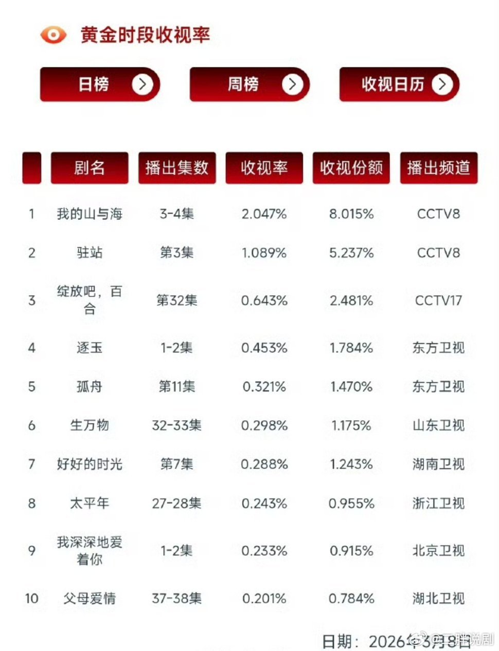 【二胖发布】逐玉收视率卫视第一