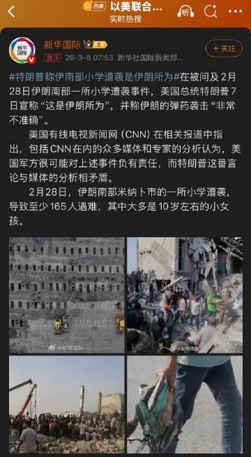 特朗普宣称伊朗一女子小学被炸是“伊朗自己所为”,给出的理由居然是伊朗的弹药袭击“非常不准确”。 2月28日,伊朗南部米纳卜市的一所女子小学遭袭,导致至少165人遇难,其中大多是10岁左右的小女孩。 特朗普的这番言论刷新了我对美国人无耻的认知,你别说,真的会有人相信特朗普的谎言的,不只是美国人,甚至国内网上的公知们都有人相信。 就连特朗普都不敢说这是伊朗故意炸的,因为那实在太扯了,实在说不过去,只好说是因为伊朗导弹精度太差误炸的,但这就更扯了。精度再差也不可能把射到以色列的炸弹炸在自己身边吧。 我觉得特朗普现在很焦虑,已经开始胡言乱语了,已经不在乎什么逻辑和事实了,反正就是赢,哪怕伊朗战争已经打了快10天了还没结束,已经彻底超出了刚开始的预期。 看看今天凌晨特朗普与记者的抽象发癫问答: 1.特朗普谈伊朗:我们在这场战争中大获全胜。 我们彻底摧毁了他们的整个邪恶帝国。 我相信这种情况还会持续一段时间。 2.特朗普谈伊朗战争将持续多久:不惜一切代价,但他们的军队几乎不存在。 3.记者:美国是否在战争的第一天轰炸了伊朗南部的一所女子小学,造成 175 人死亡? 特朗普:根据我所看到的,那是伊朗所做的事情。 记者:赫格塞斯部长,这是真的吗? 赫格塞斯:唯一以平民为攻击目标的一方是伊朗。 特朗普:我们认为这是伊朗所为……他们的弹药精度很差。 4.记者:您能否描述一下您眼中的“无条件投降”是什么样的?您希望伊朗做出什么? 特朗普:我说的是无条件的,不是有条件的。我说的是无条件的。 这意味着他们认输了,或者他们已经无力反抗,再也无力抵抗。没有人还能继续抵抗。 这种情况也可能发生,因为我们已经多次摧毁了他们的领导层。 所以如果他们投降——或者如果没有人投降——他们在军事能力方面就失去了作用。 5.记者:你有什么迹象表明俄罗斯在这件事上以某种方式支持伊朗吗? 特朗普:我完全没有收到任何这方面的迹象。如果他们真这么做了,那他们做得也不太好,因为伊朗的情况也不太好。 6.记者:霍尔木兹海峡没有船舶通行。 特朗普:那是船方的选择……油价会很快下跌。 7.记者:贝森特部长宣布了一些暂时允许俄罗斯向印度出售部分石油的措施。您是否正在考虑其他措施,包括动用战略石油储备? 特朗普:我这么做只是为了缓解一点压力,但我认为石油储量很充足。我们有很多石油。我们国家拥有大量的石油。 8.记者:在什么情况下你会派遣地面部队?你对此有何考虑? 特朗普:我根本不想谈这件事。我觉得这个问题不合适,我不会回答。 会不会有什么非常充分的理由?肯定有非常充分的理由。 如果我们真的那样做,他们就会被彻底摧毁,以至于无法在地面上作战。 9.记者:您会派地面部队保护核设施中的浓缩铀吗? 特朗普:也许在某个时候我们会——那将是一件好事——但现在我们正在全力打击他们。我们还没有采取行动,但这是我们以后可以做的事情。 我们现在不会这么做。也许以后会做。 10.特朗普谈伊朗:他们想和解;我们不打算和解。 11.特朗普谈伊朗:他们砍掉婴儿的头,他们把女人砍成两半,请查看10月7日。 12.特朗普谈伊朗:我们撤换了最高领导层,也撤换了第二层领导层。 现在他们已经发展到第三或第四层领导层,而且现在的领导人甚至无人知晓。 13.特朗普谈伊朗:他们突然开始向中东国家道歉。 你可以把这看作是我们以及那些真正与我们友好的中东国家的胜利。我想他们不会再向他们开火了——他们已经道歉了。 这就是投降。我称之为投降。 14.特朗普谈库尔德人:我们不想让战争变得更加复杂。我们不想看到库尔德人受伤或丧命。 我们和他们关系一直很好。他们愿意进去,但我已经告诉他们我不想让他们进去。 15.记者:你认为这一切完成后,伊朗的地图看起来还会和以前一样吗? 特朗普:我不能告诉你。可能不会。 16.记者:即使这对伊朗人没有太大帮助,俄罗斯人仍然会卷入一场他们并未参与的冲突。 特朗普:他们难道不会说我们是在对他们做同样的事吗? 他们可以公布所有想公布的信息,但民众已经不堪重负。我们拥有地球上最强大的军队。 17.记者:您是否愿意参与伊朗下一任领导人的遴选? 特朗普:是啊。我们没必要每隔五年或十年就回来做这件事。我们想选出一位不会把他们带入战争的总统