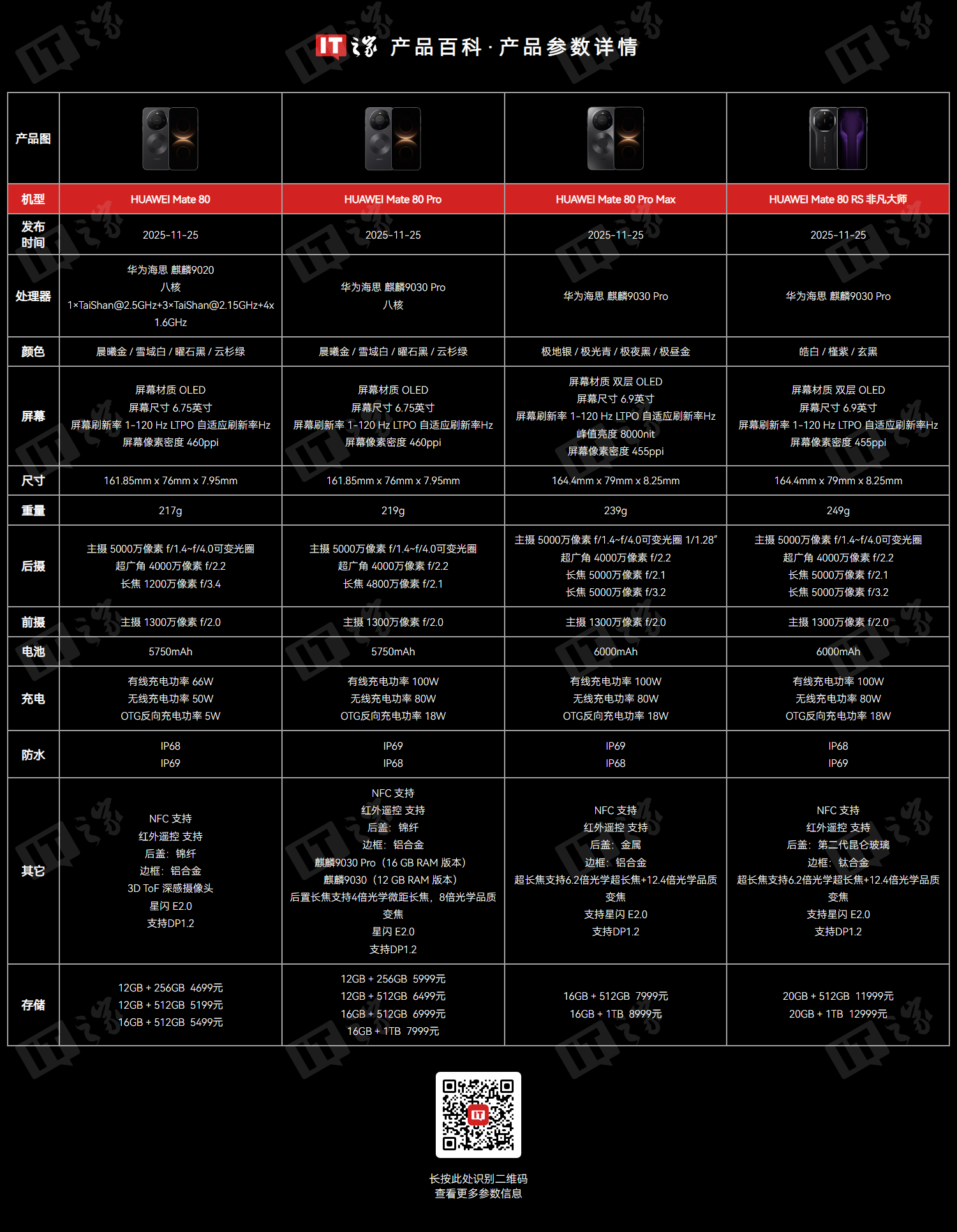 华为Mate80系列手机重点参数配置差异如下: