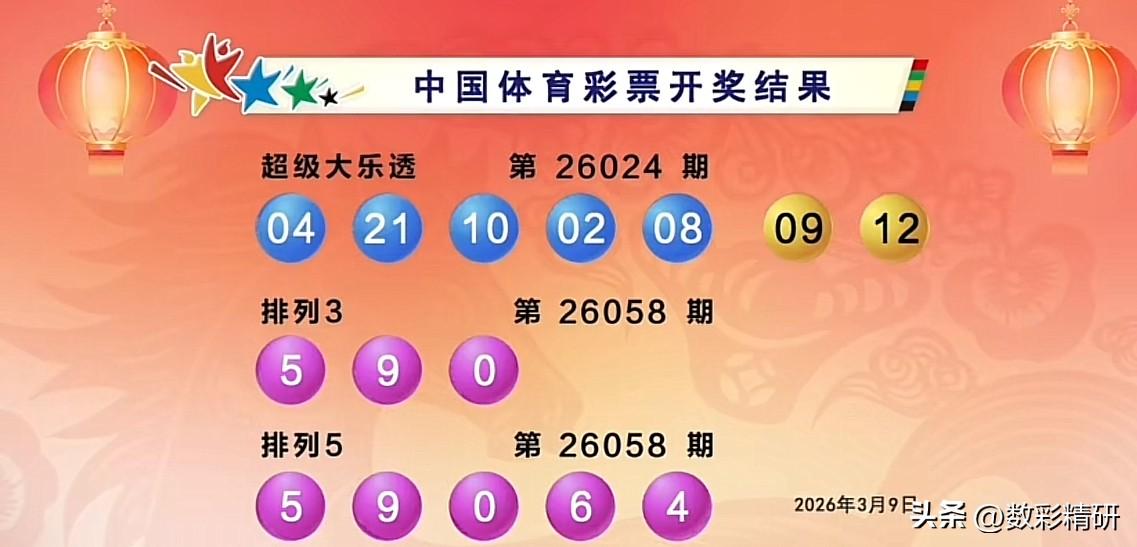 大乐透第26024期开奖揭晓:前区 02、04、08、10、21,后区 09、12。本期出号可谓“意外连连”: 意外一:一区罕见开出四枚奖号,且清一色皆为偶数。 意外二:上期三区热出四码,本期竟直接“断区”,冷热反转只在朝夕。 意外三:前区奇偶呈现“1:4”格局,偶数强势控场。 意外四:后区组合 09 与 12 均属0路码。09 虽在预料之中,但 12 在连开四期后仅隔三期再度现身,着实令人意外。 如此号码布局,今晚大复式投注中奖机会不小,但头奖注数恐怕有限。不知您今夜与几个号码邂逅了呢?