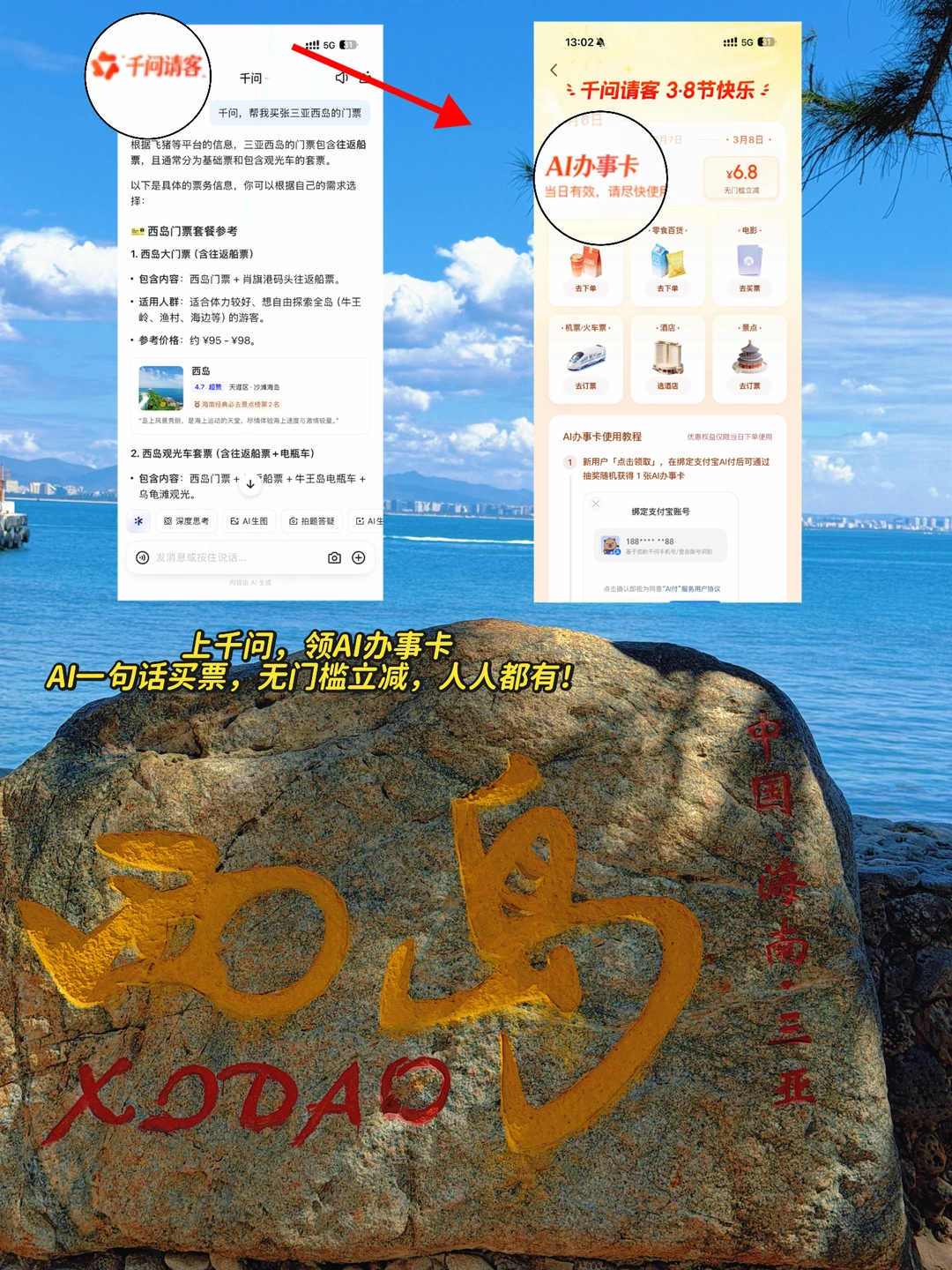 薅到三亚西岛门票‼️做千问女孩太幸福啦!