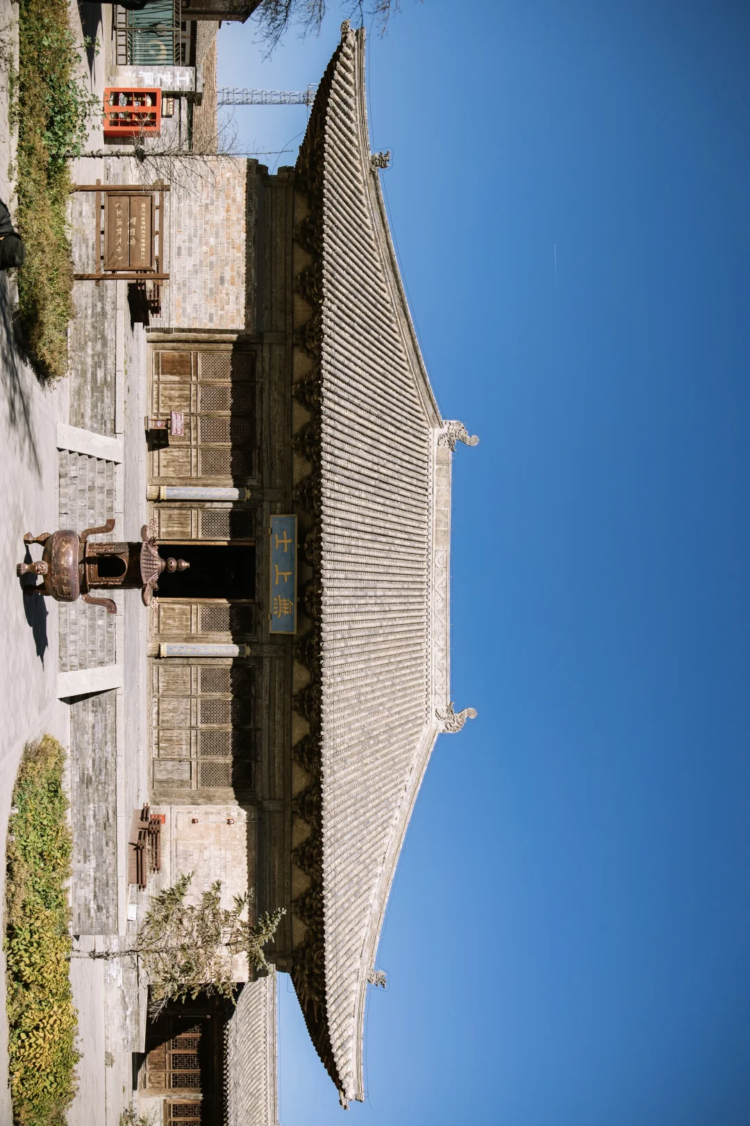 蔚县灵岩寺的大雄宝殿非常的恢弘,镜头放在最广角端,勉强将其囊括在内。