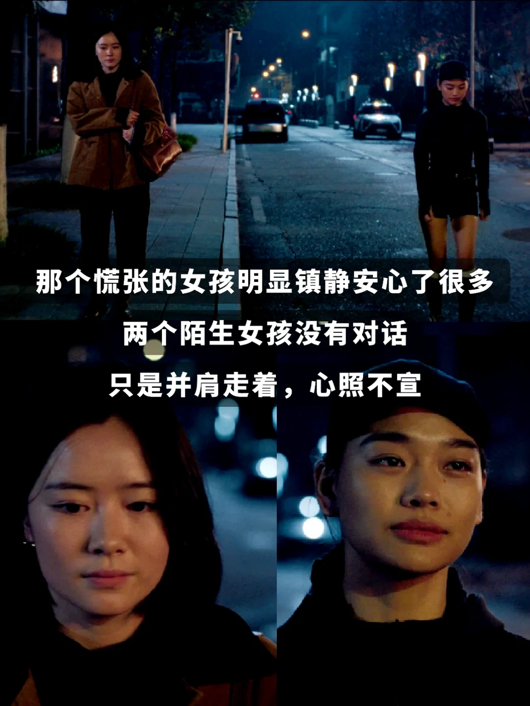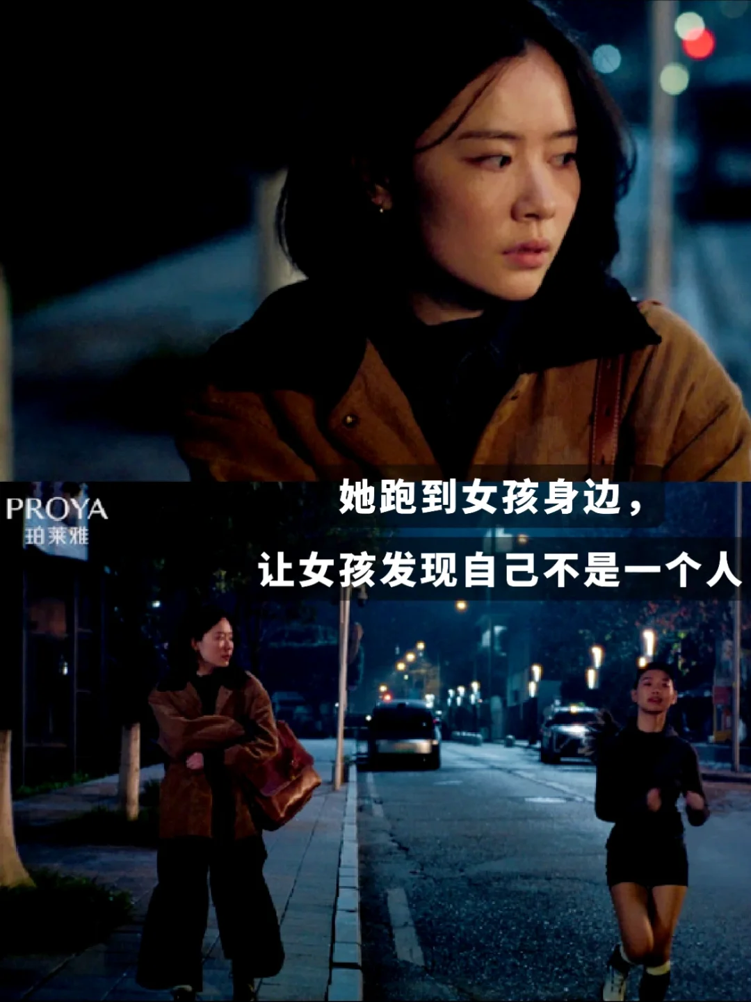 正如短片里的这个细节,女生夜跑路上看到独身走夜路的慌张女孩,她能懂她的害怕不安,也愿意停下并一起走一程。