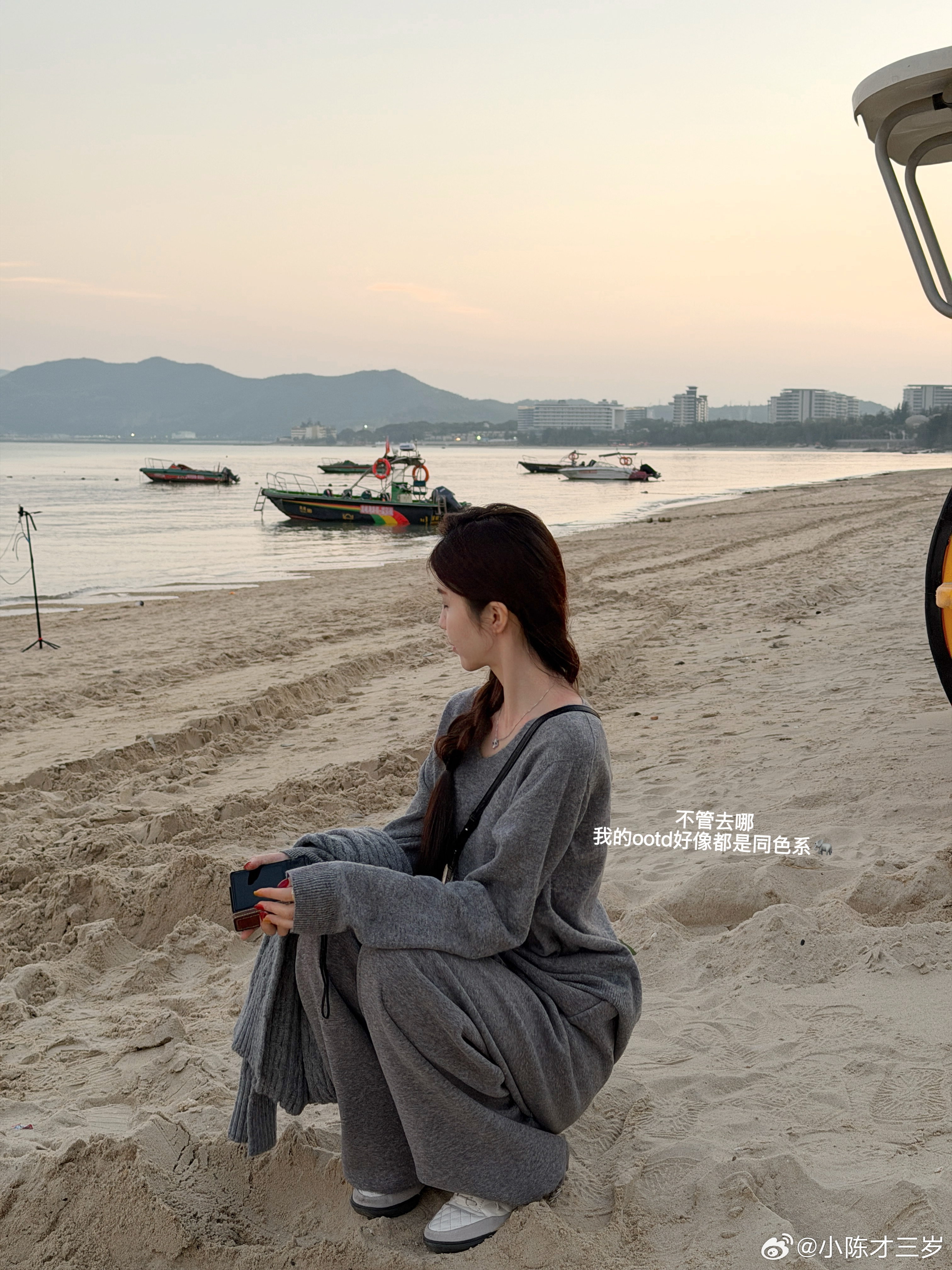 红衣映海,春信已至海风轻拂沙滩,一抹红衣绽放在海天一色间。立于岸畔,看碧波
