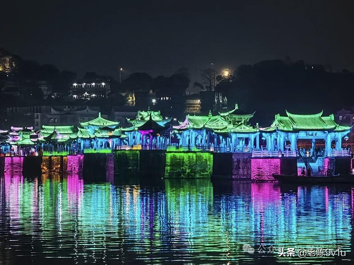 当千年广济桥遇上赛博霓虹,一江碧水被揉碎成万点星光,这是独属潮州的夜宴。8点钟左右灯光真的水上夜景。值的一玩