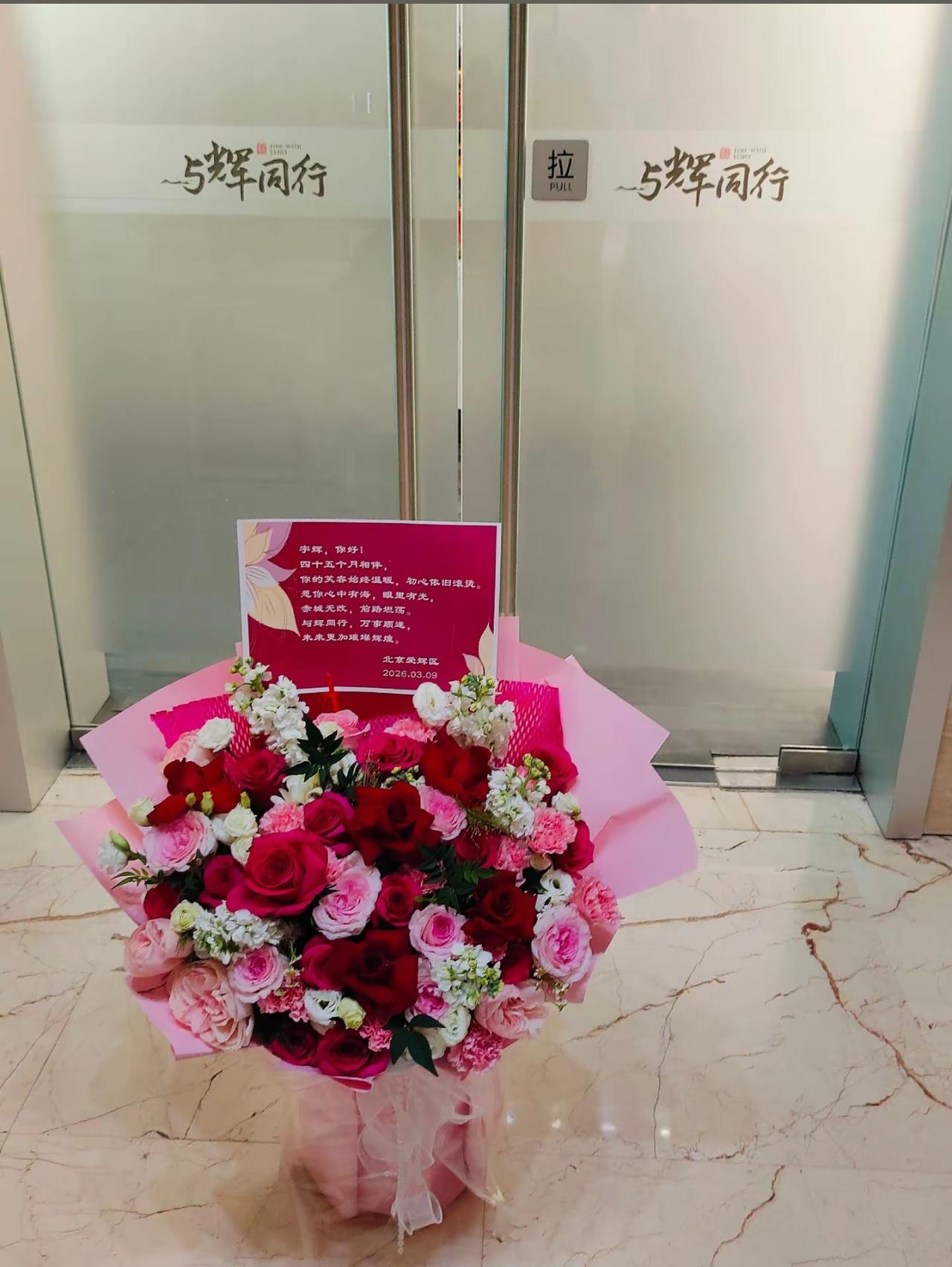 董宇辉出圈45个月快乐! 昨天又是一个月的9号, 又是宇辉出圈纪念日。 也许他自己忙忘记了, 但是211同学没有忘, 鲜花送上到了公司门口, 每一朵花瓣都是大家对宇辉真心的祝福和呵护。 这小子昨天又偷偷摸摸出来觅食, 闪现直播间。 我错过了, 非常遗憾。 哎,谁能想得到这小子竟然又“空降偷袭”呢? 太出其不意了。 有朋友调侃: 过完年最玄乎的事: 排班表上查无此人, 直播间里神出鬼没。 来早了,人还没到; 来晚了,人已下班。 排班表隐身, 直播间闪现, 早来空等待, 晚来拍大腿。 主打一个: 想见你, 全靠缘分, 蹲到你, 全靠运气……[大笑][大笑] 太形象了, 这个正月里想要看到宇辉, 真的是靠缘分靠运气。 说来也玄乎, 宇辉昨天离开直播间的时候, 热卖榜上热度值恰好是1314万,[大笑][大笑] 这是玄学还是巧合? 我也无法得知。 昨天又是业绩稳稳的一天, 6800+1000, 加起来也有7800万。 非常优秀了, 这两个账号是人家兄弟姐妹全家人的4倍有余。 不管别人怎么讨论这个数据, 反正我是很知足的, 散会! 董宇辉