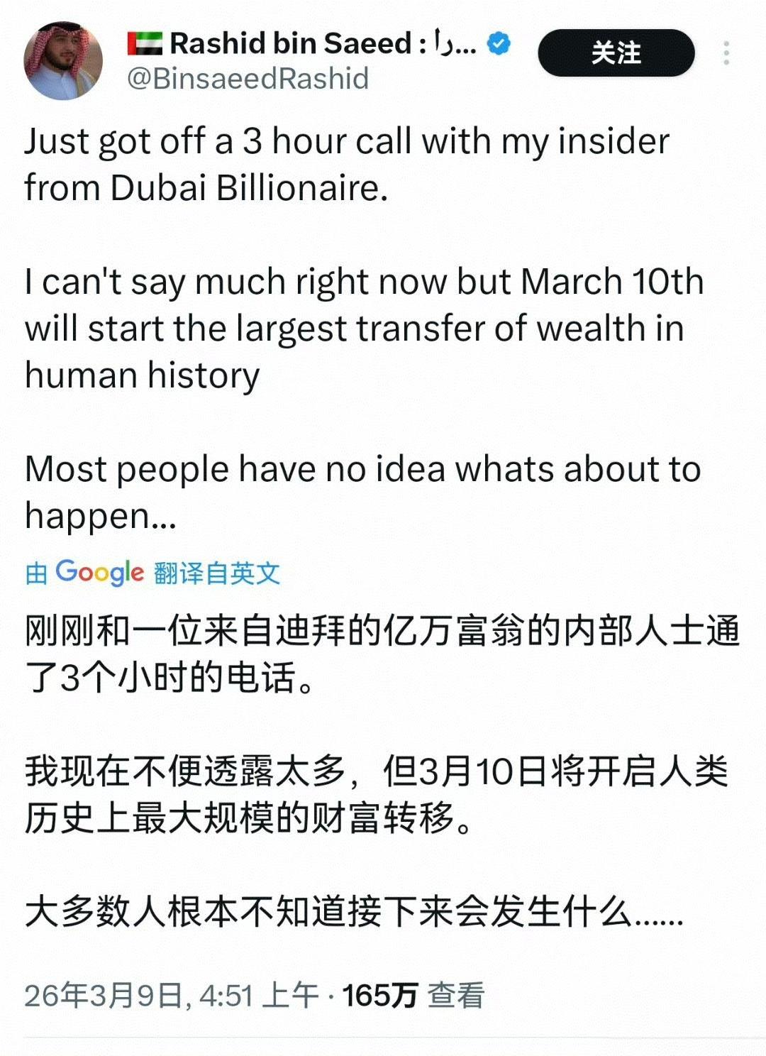 有消息称,今天有天量资金要从中东那旮旯跑出来,到底跑不跑的出来,或者愿不愿意跑出来,我个人认为有待观察。因为中东王爷家基地被炸这件事情我认为有蹊跷。看似是伊朗为了回报美以的“先发制人”而先打击美国在各王爷家的基地,但实际上背后也可能是王爷们专门让伊朗炸的。只要这一次把美国在王爷家的基地炸掉了,再想恢复,王爷们可能不乐意了,谁愿意自己花钱请一个“特不靠谱”的保安呢?把特不靠谱的保安赶走,自己用钱重新武装,自己家以后就安全了,以后大家存在王爷家的钱也安全了,钱自然就不会出逃中东。