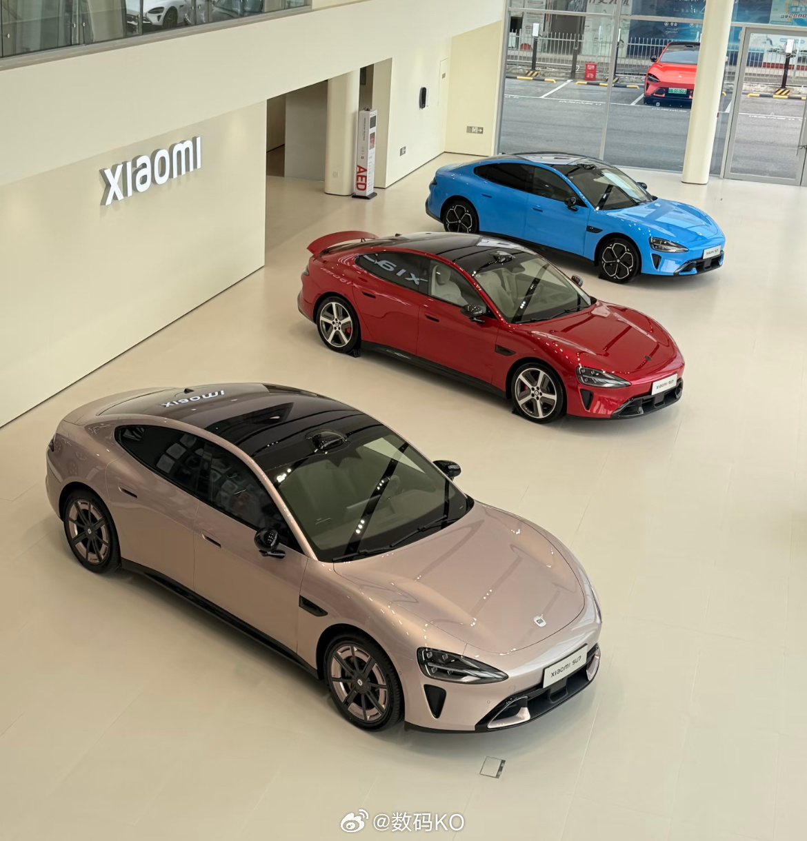 新一代小米su7 鎏金粉、赤焰红、卡布里蓝同框,含金量不言而喻,你最喜欢哪个配色