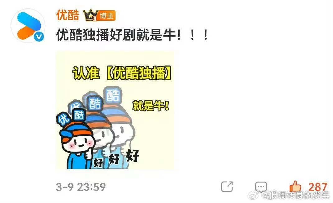优酷SMG最大赢家👖昨晚睡好,做梦都笑醒好几次。优酷赢麻了,品质盛典颁发的视帝