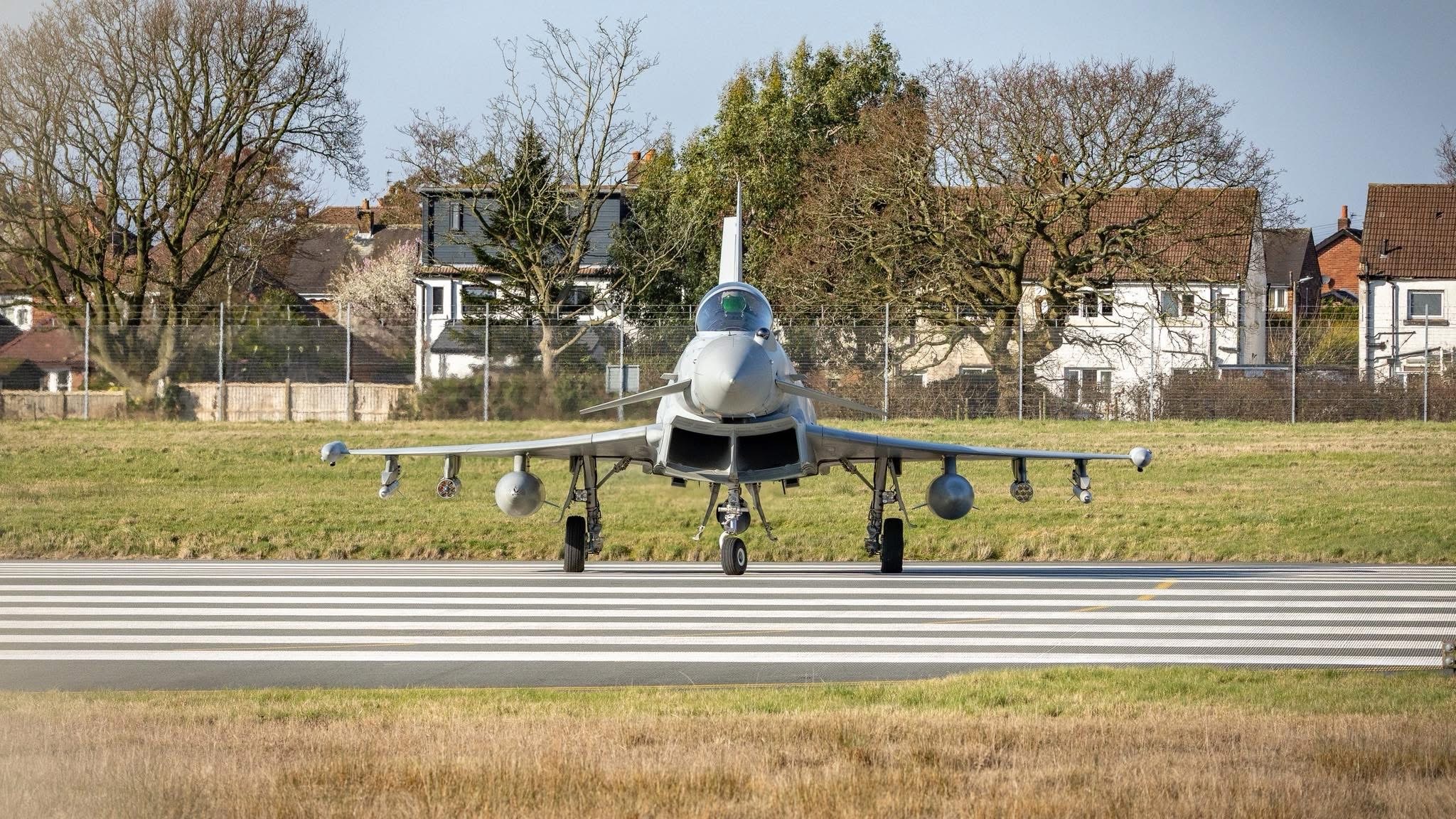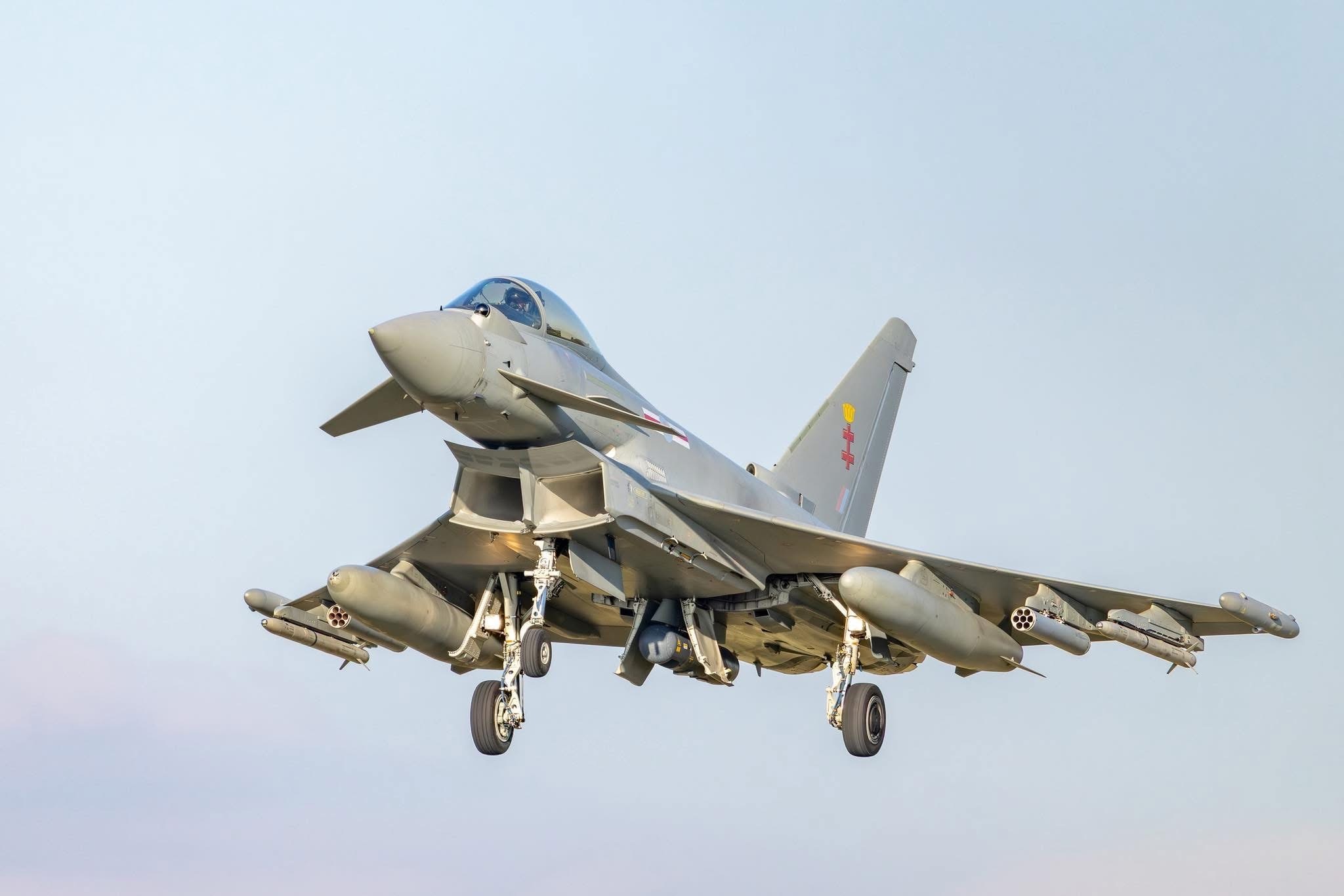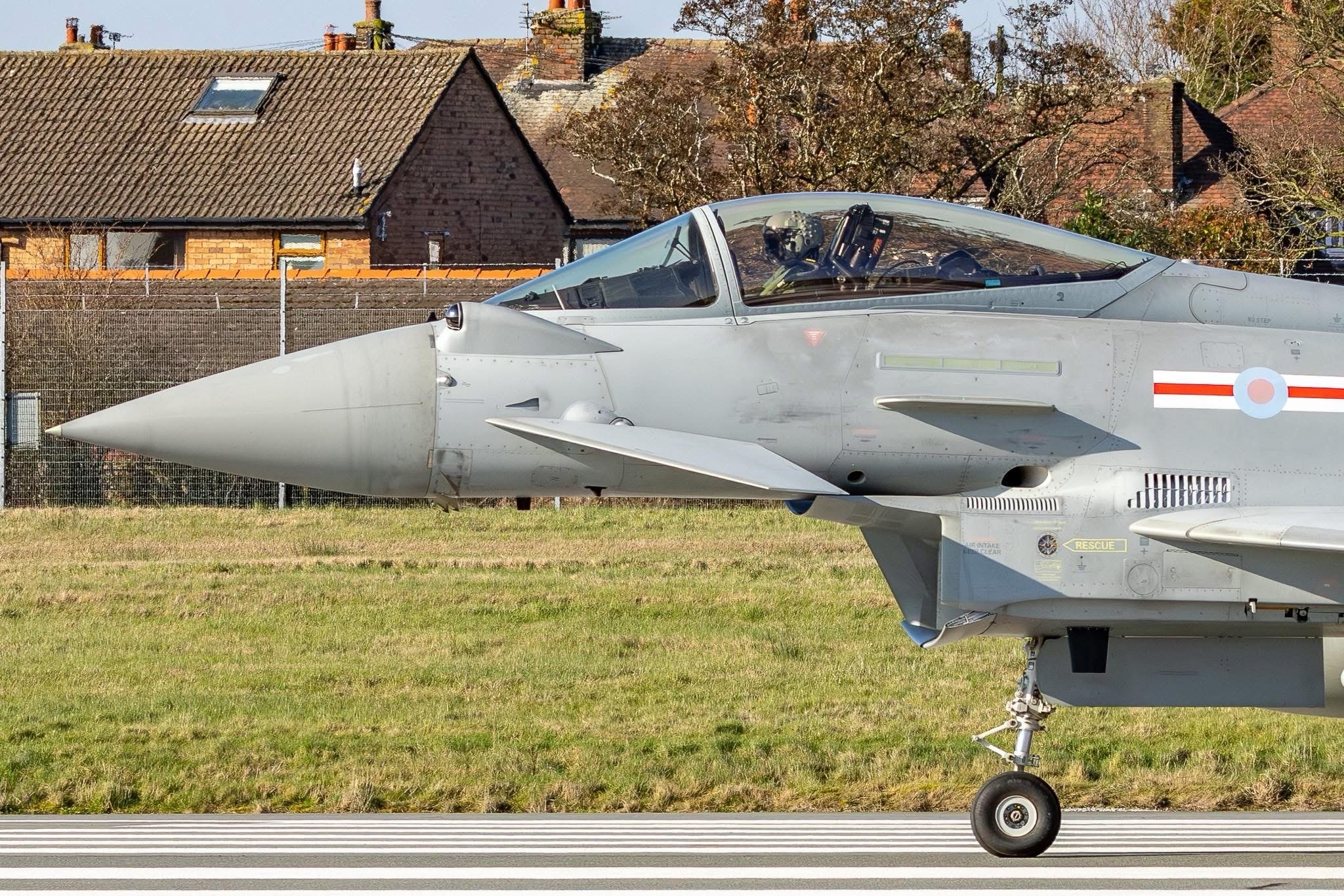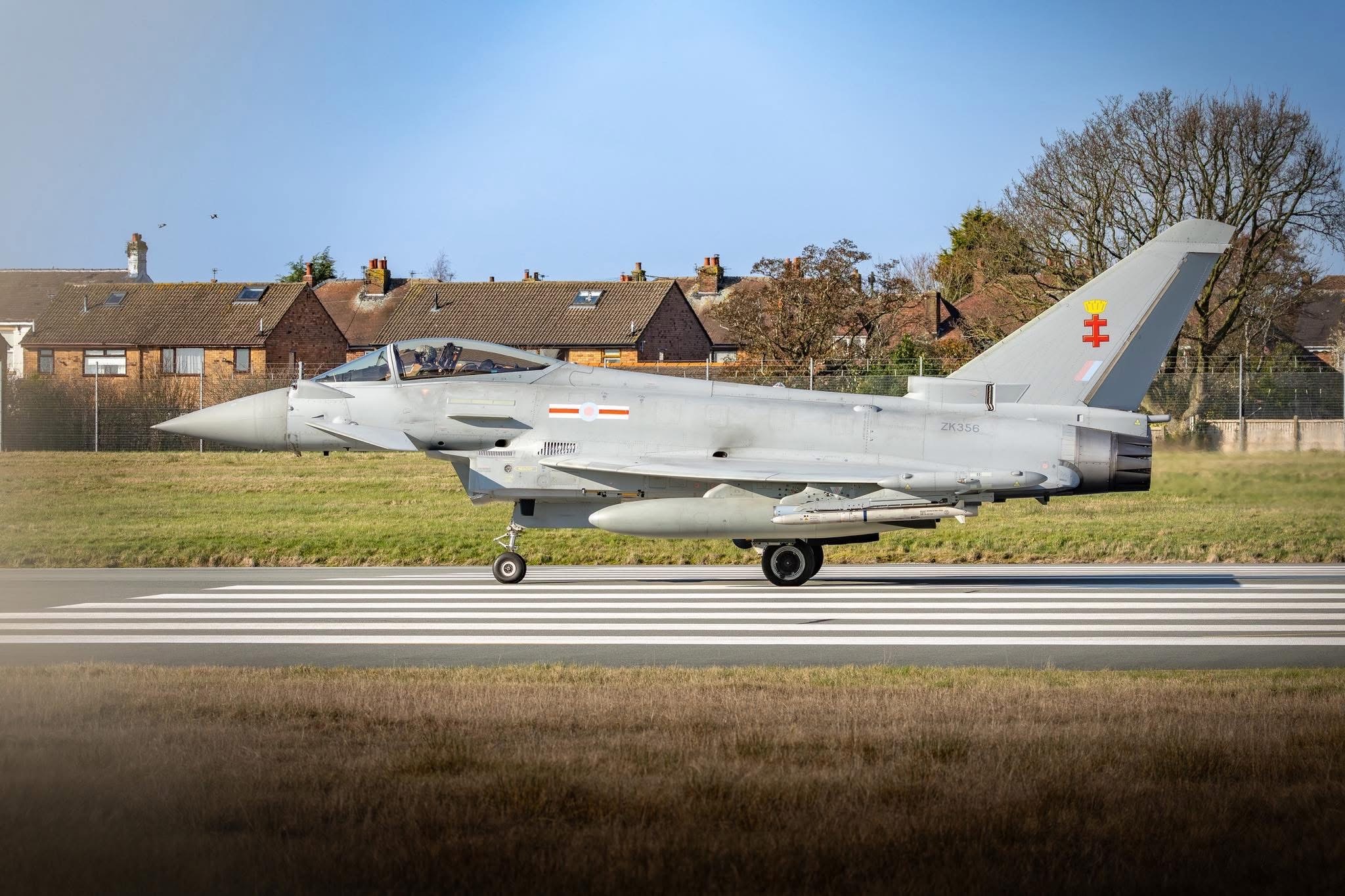英国皇家空军(RAF)第41试验评估中队台风战机挂载APKWS II精确制导火箭弹发射巢于BAE沃顿厂(Warton)开展测试。今日台风军用飞机信息汇 英国“爬墙党”拍摄的好图,拍得真不错,还有正脸证件照和侧视照;既有艺术价值,又有情报价值Photo credit: Tech Digital Photography