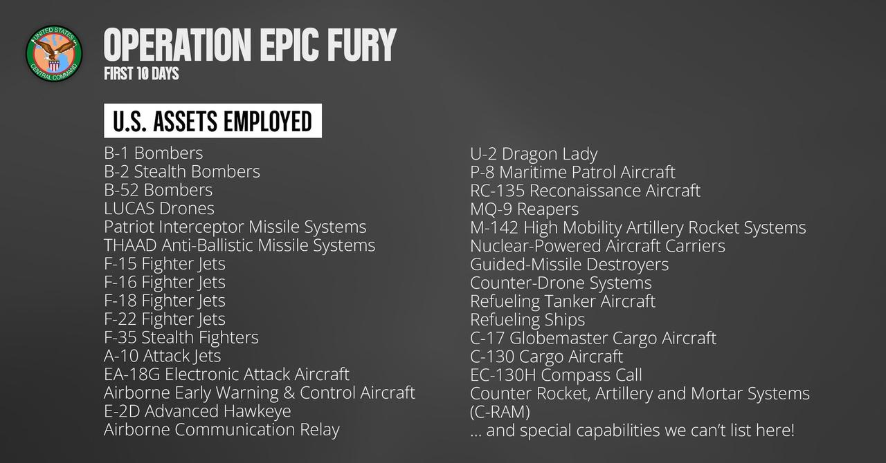 美国中央司令部(CENTCOM)的最新通报,美国在“史诗狂怒行动”中已摧毁或损坏