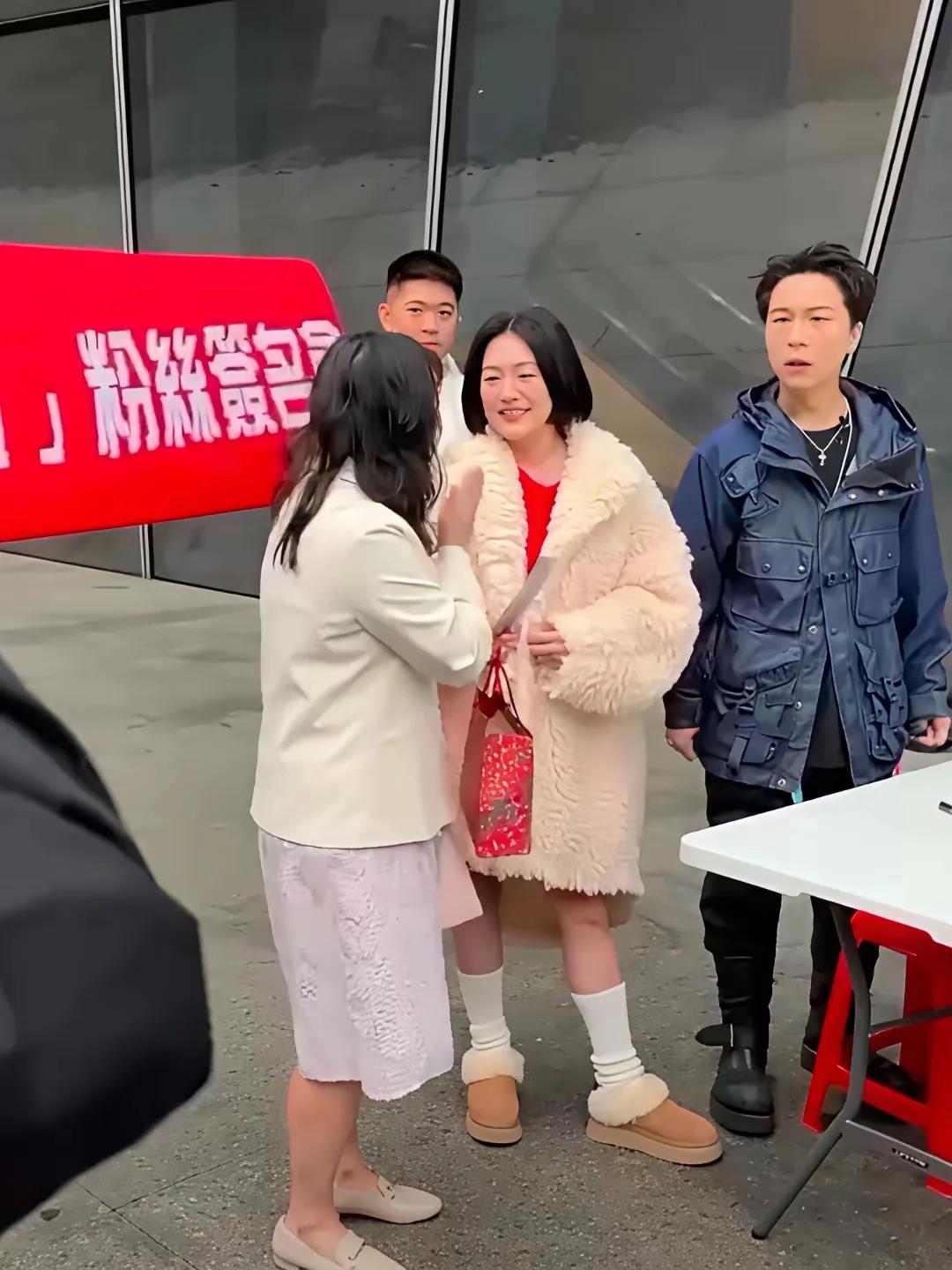 小S真得走出来了,她穿着很时尚,出现在台北街头开粉丝签名会,上穿皮草,红色内搭,
