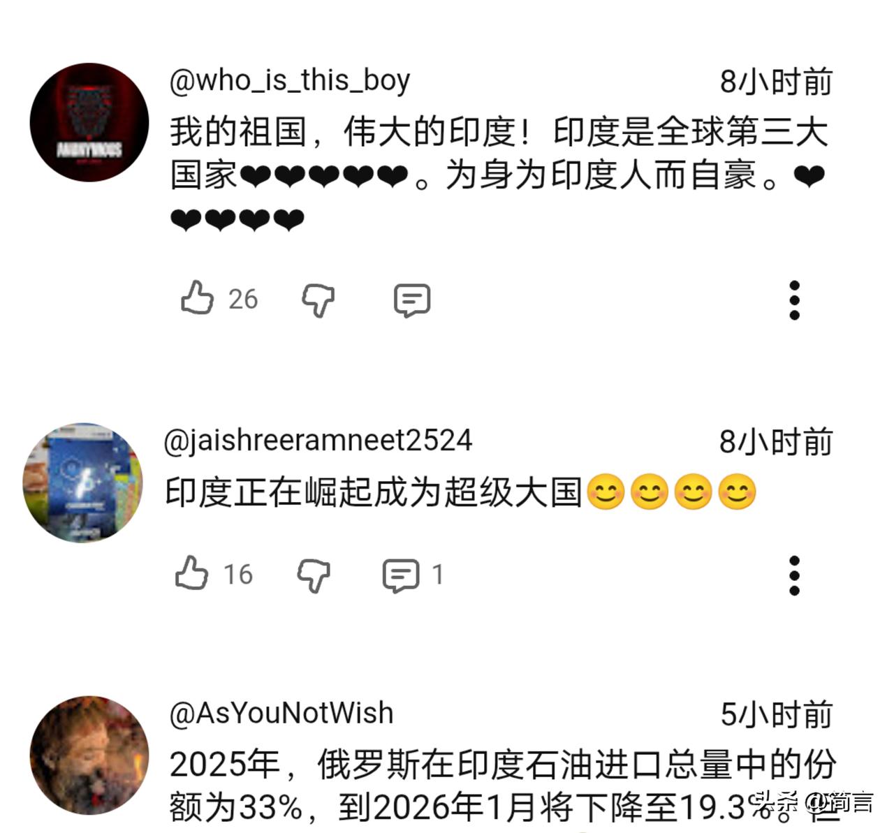 回应来了:印度购买俄罗斯石油从来不需要任何国家的评可。 近日,美国财政部发布了一项为期30天的临时豁免令,允许印度购买目前滞留在海上的俄罗斯原油。对此,印度进行了回应。 据印媒3月9日报道,新德里方面发表了一份“清晰明确”的声明:印度的能源安全不容谈判,购买俄罗斯石油是印度主权决定的,无需华盛顿的“许可”或“豁免”。 美方此举看似是美国对印度的“特殊优待”,实则是华盛顿在能源危机与制裁大棒之间做出的无奈妥协。如果中东局势持续紧张,油价居高不下,美国将面临更艰难的选择:是继续延长豁免,还是重新举起制裁大棒?这场围绕能源、利益与话语权的拉锯战,远未结束。 这则消息同样引起了印网友的关注,热议由此引发…