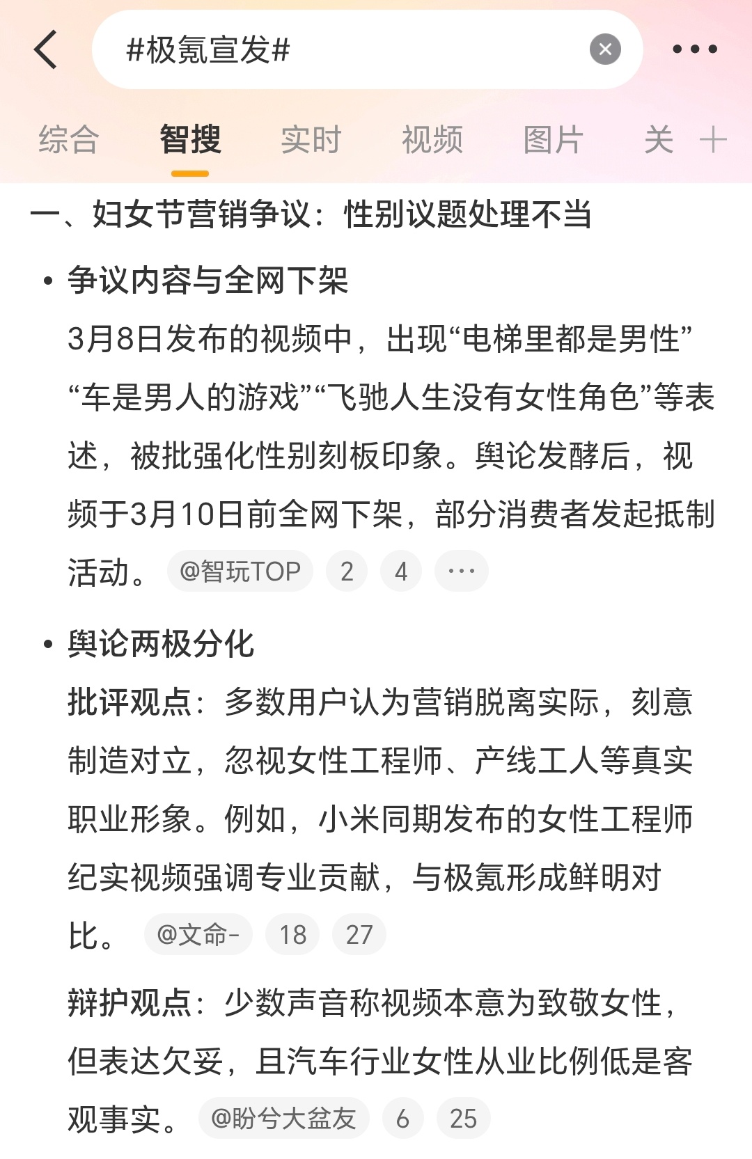 极氪宣发这种就是明显放大,故意制造矛盾了……不应该有刻板印象,相信车企里面本身也有不少女性员工,女性占比很多,平常工作对接接触品牌官方人员女性也挺多的。作为官方视频确实得把控好度,不能太片面,太极端。