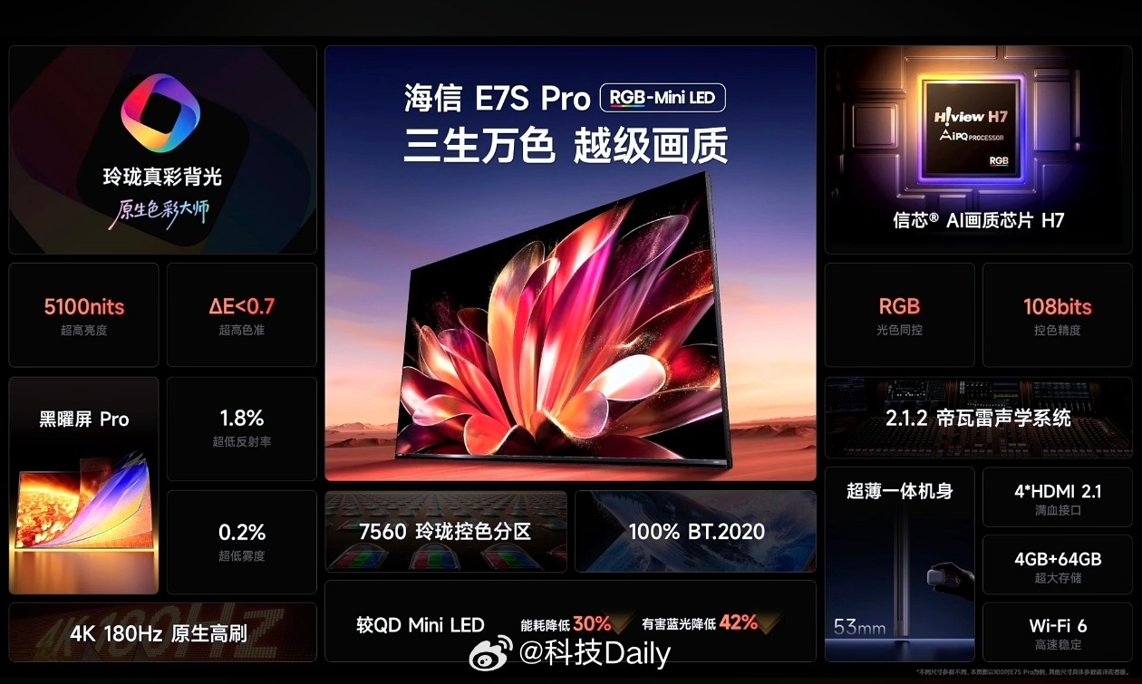 海信E7S Pro轻薄好看有质感,RGB-Mini LED专属铭牌排面满满,软件方面更是支持光影妙控台。重构底层光学架构,值得我们换代,毕竟无论是色彩,观感,还是体验都是一等一的,新机换电视终于有理由了。三生万色 越级画质,一看就惊艳。