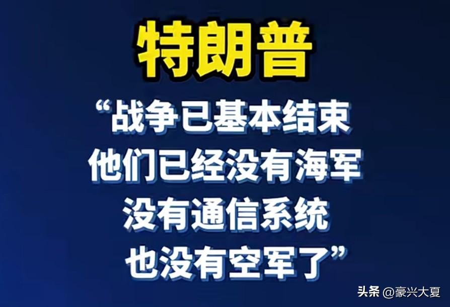 特朗普:“战争已基本结束,他们已经没有海军,没有通信系统,也没有空军了”这场战争似乎要快结束了!可是事实真的如此么?这场战争从一开始的“输不起”变成了“打不起”!美国现在的实力不可能这么拉胯了吧?大家怎么看呢!