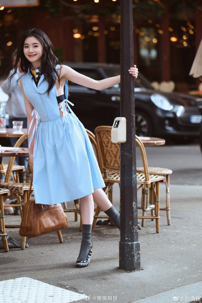 刘浩存巴黎慵懒春日造型刘浩存蓝色衬衫裙的小巧思 谁懂啊!刘浩存的巴黎春日穿搭太有感觉,初春阳光洒在身上,蓝色衬衫裙尽显法式浪漫。造型慵懒又灵动,春日温柔感扑面而来,侧腰镂空的设计暗藏巧思,俏皮又可爱,越看越有味道。