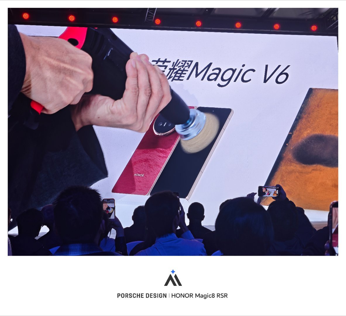 荣耀Magic V6到底有多硬核,在场馆外就要经受水泡、冰冻和拳击击打的测试。发布会现场还要经历电钻、成人拖拽的考验。最牛的是千锤百炼之后竟然真的毫发无损,这你受得了吗